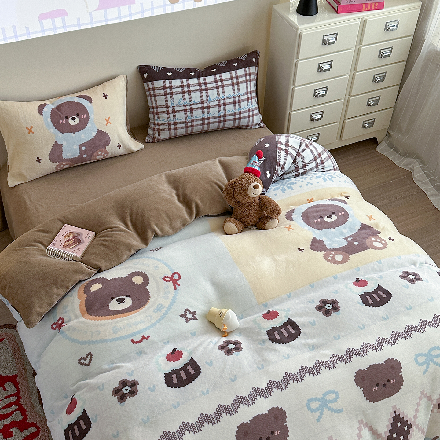 美乐迪家纺 2025新款高品质大版牛奶绒四件套 费尔岛小熊