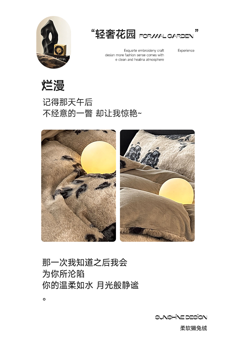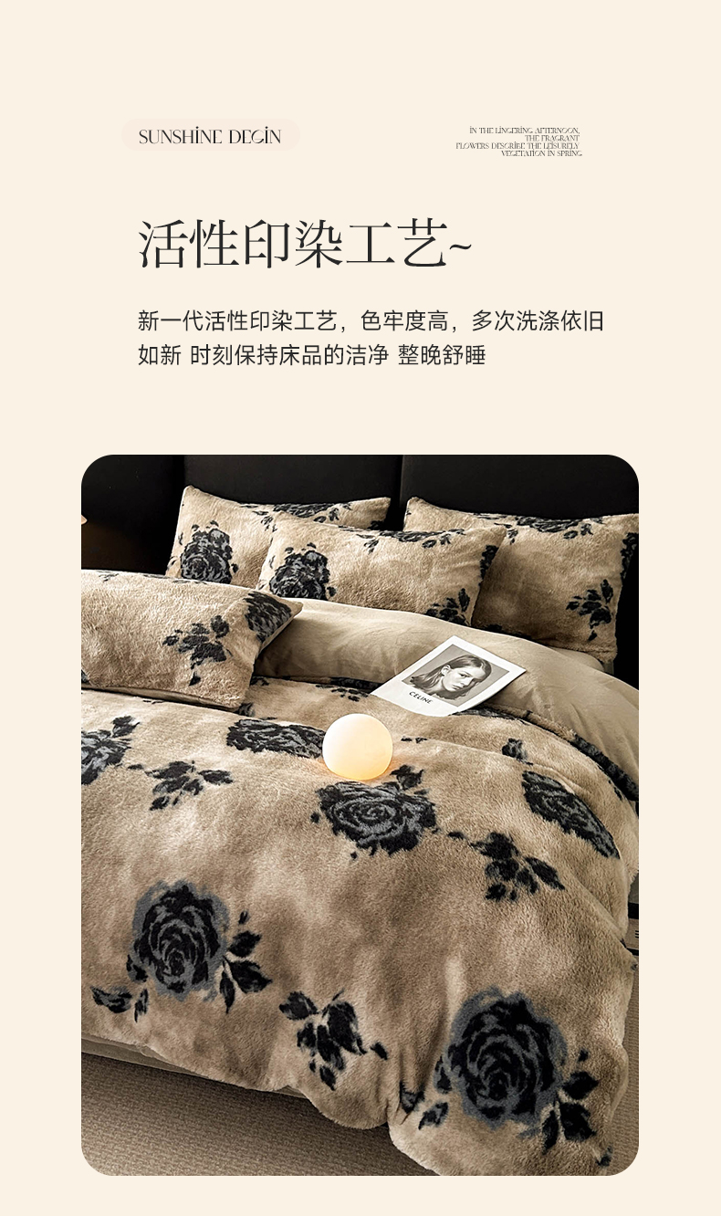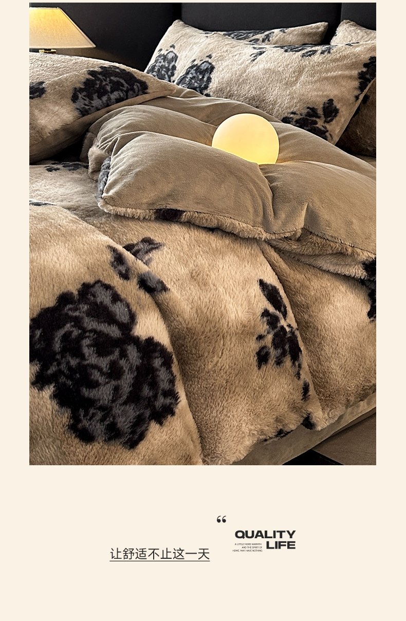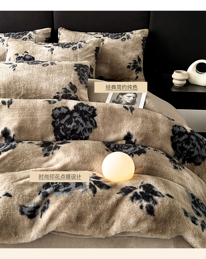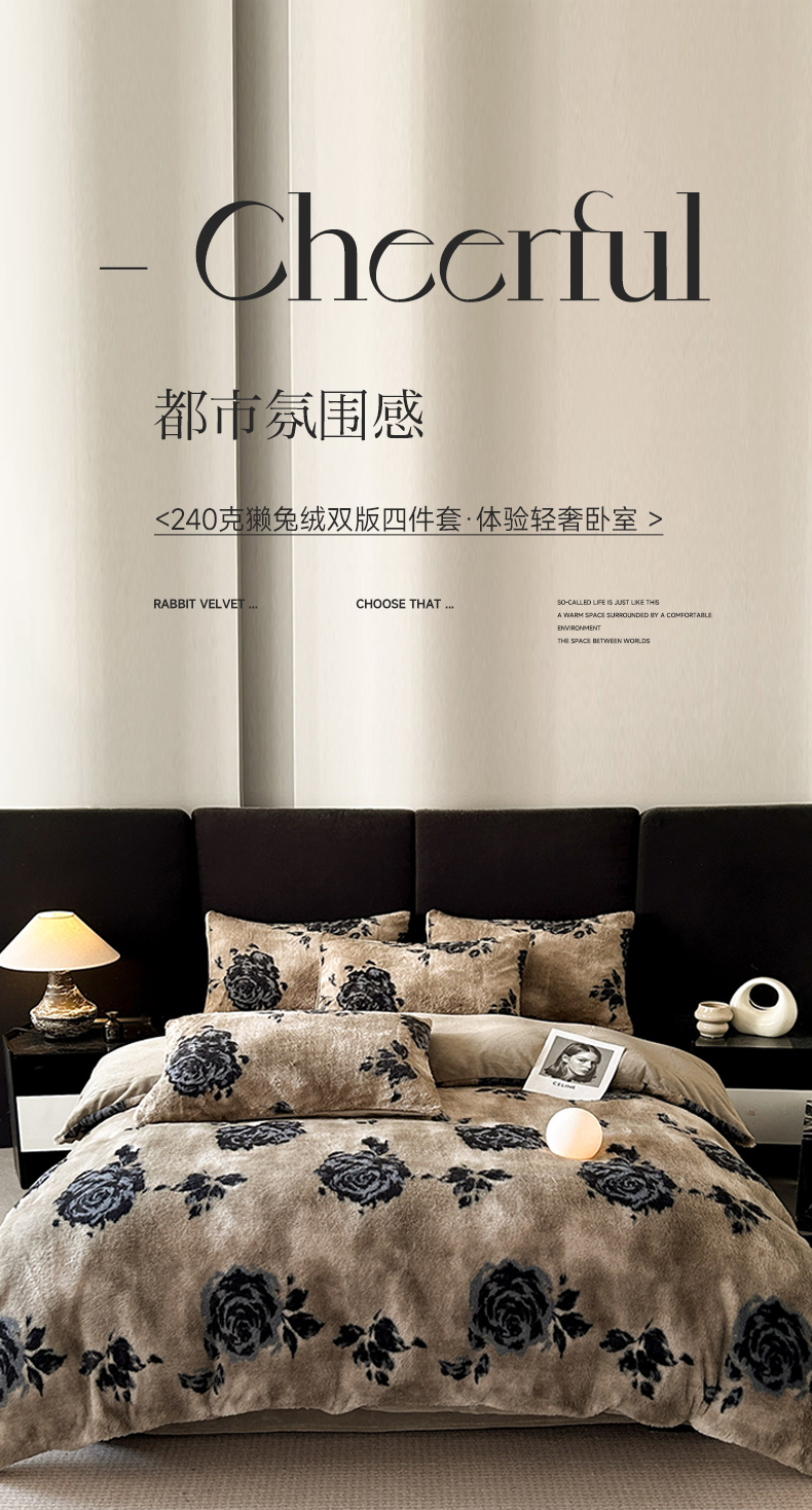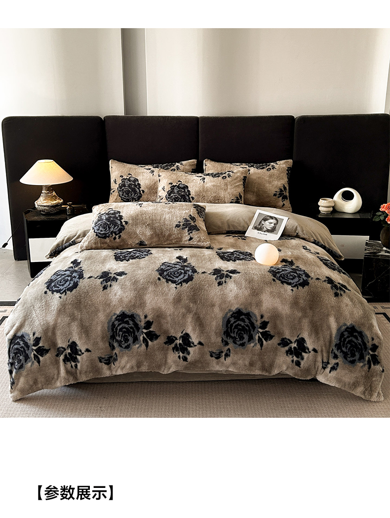 当前位置: 91家纺网 > 商品网购 > 床品套件 > 四件套 > 兔毛绒四件套 > 蓝极人 2025新款美拉德系兔绒兔毛绒兔兔绒印花四件套 黑影玫瑰