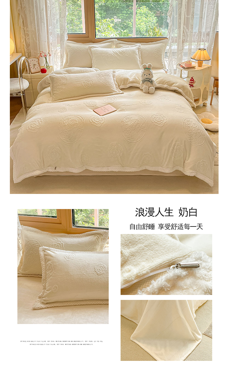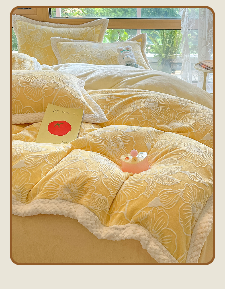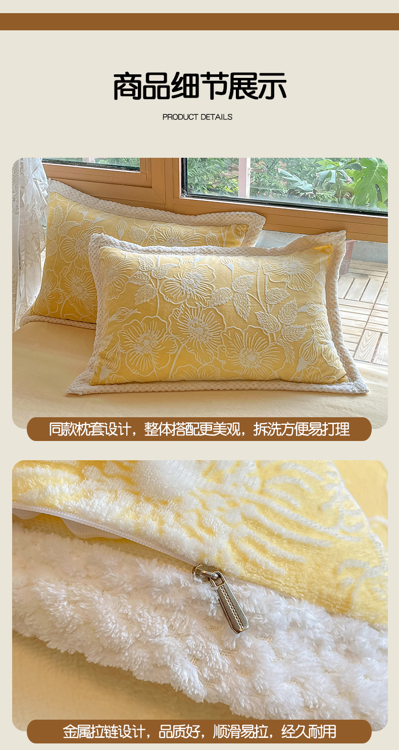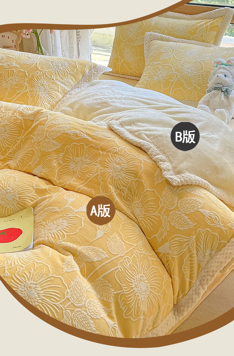 当前位置: 91家纺网 > 商品网购 > 床品套件 > 四件套 > 雕花绒四件套 > 琪格格纺织 2025新款全消光包边立体简约清新雕花绒四件套 雕花包边-安妮花苑 黄