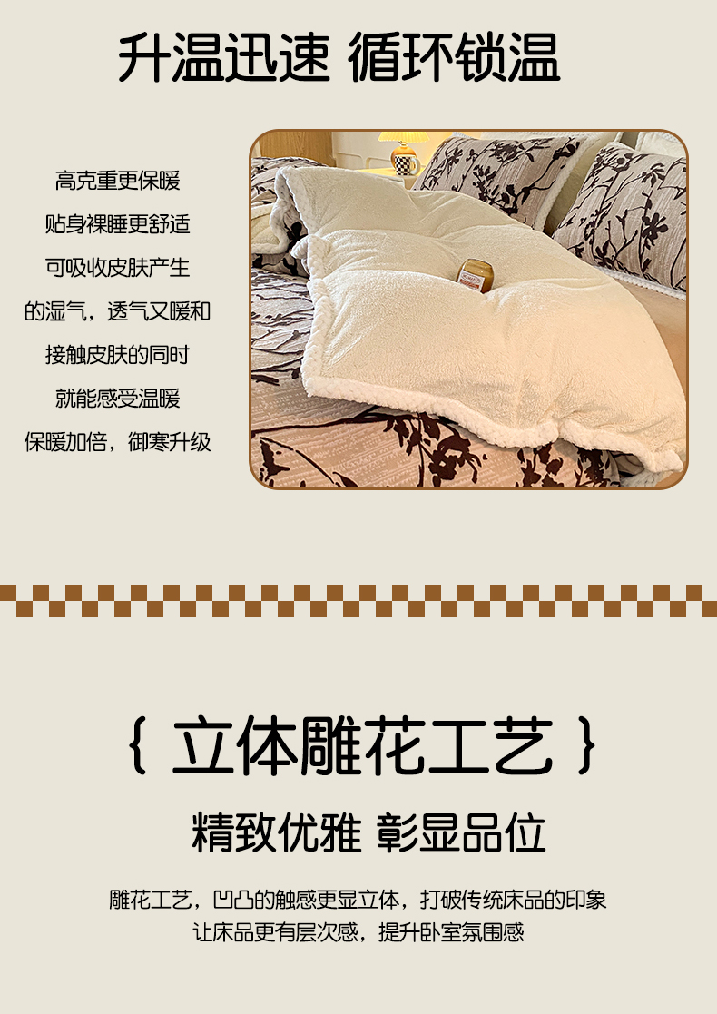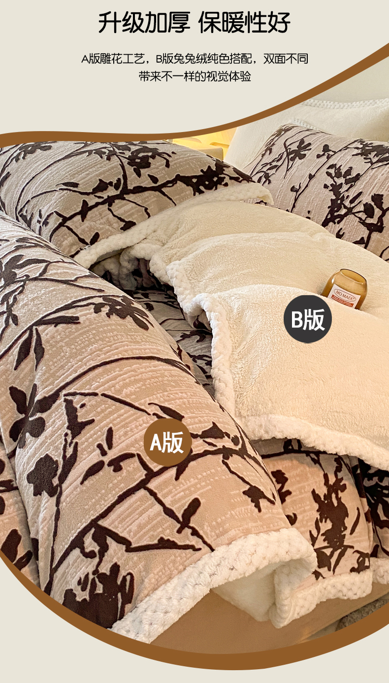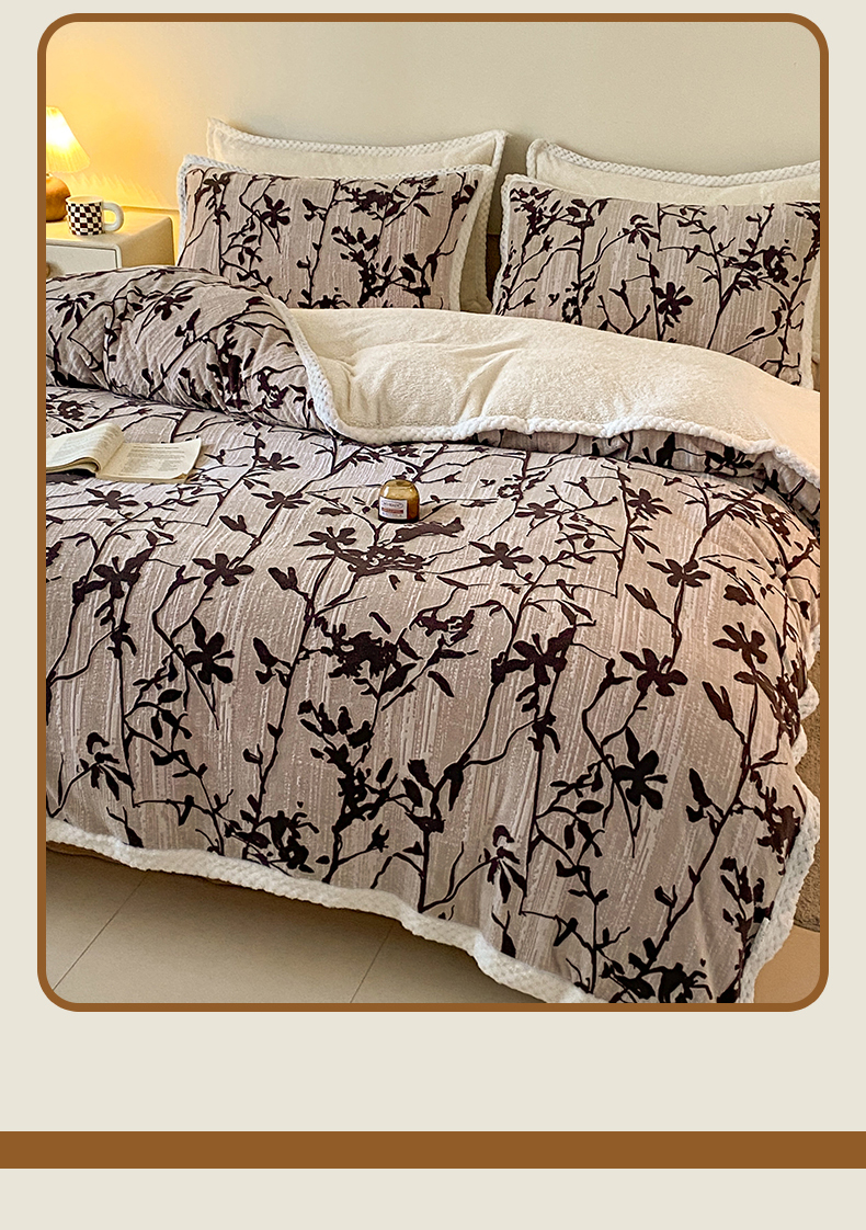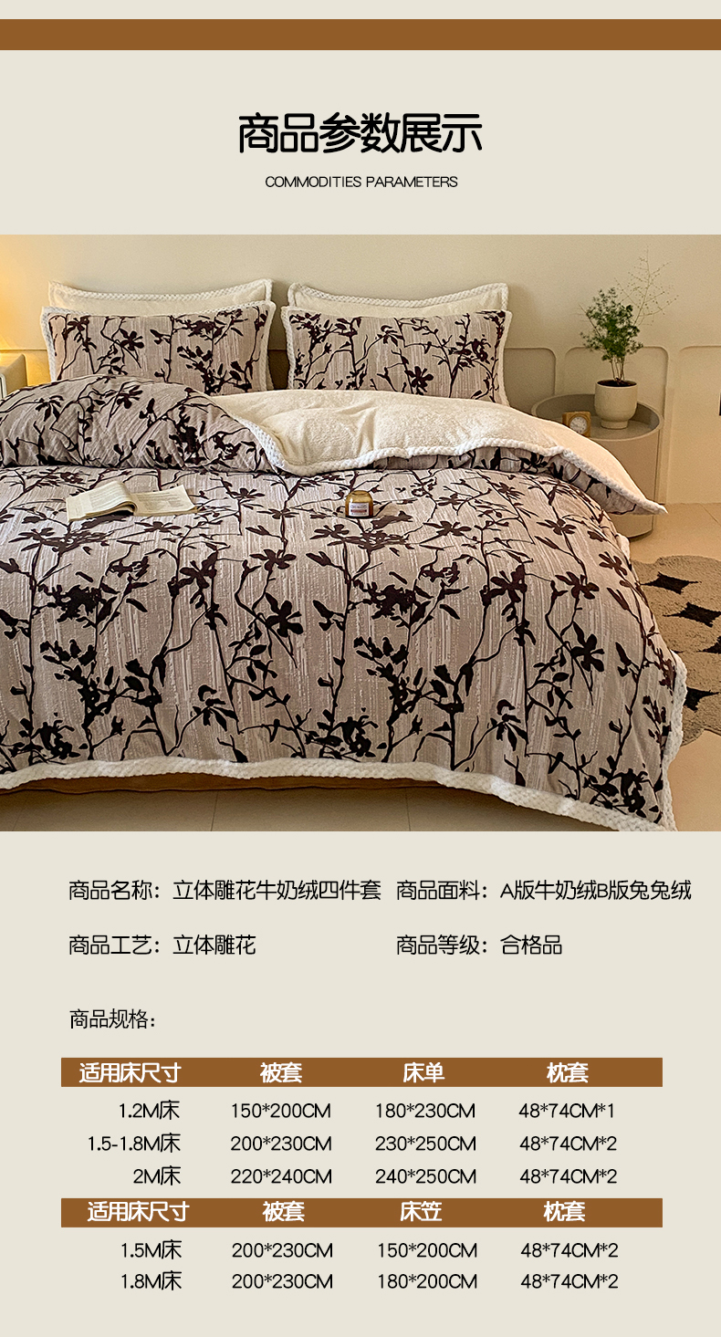 当前位置: 91家纺网 > 商品网购 > 床品套件 > 四件套 > 雕花绒四件套 > 琪格格纺织 2025新款全消光包边立体简约清新雕花绒四件套 雕花包边绒-踪叶-米咖
