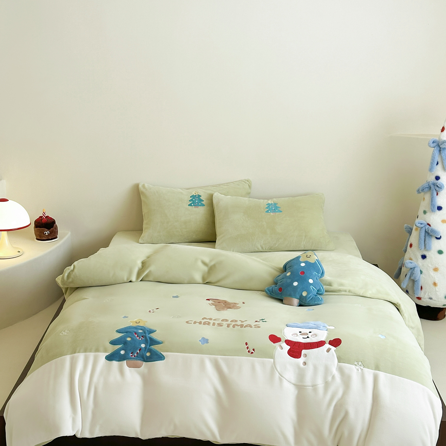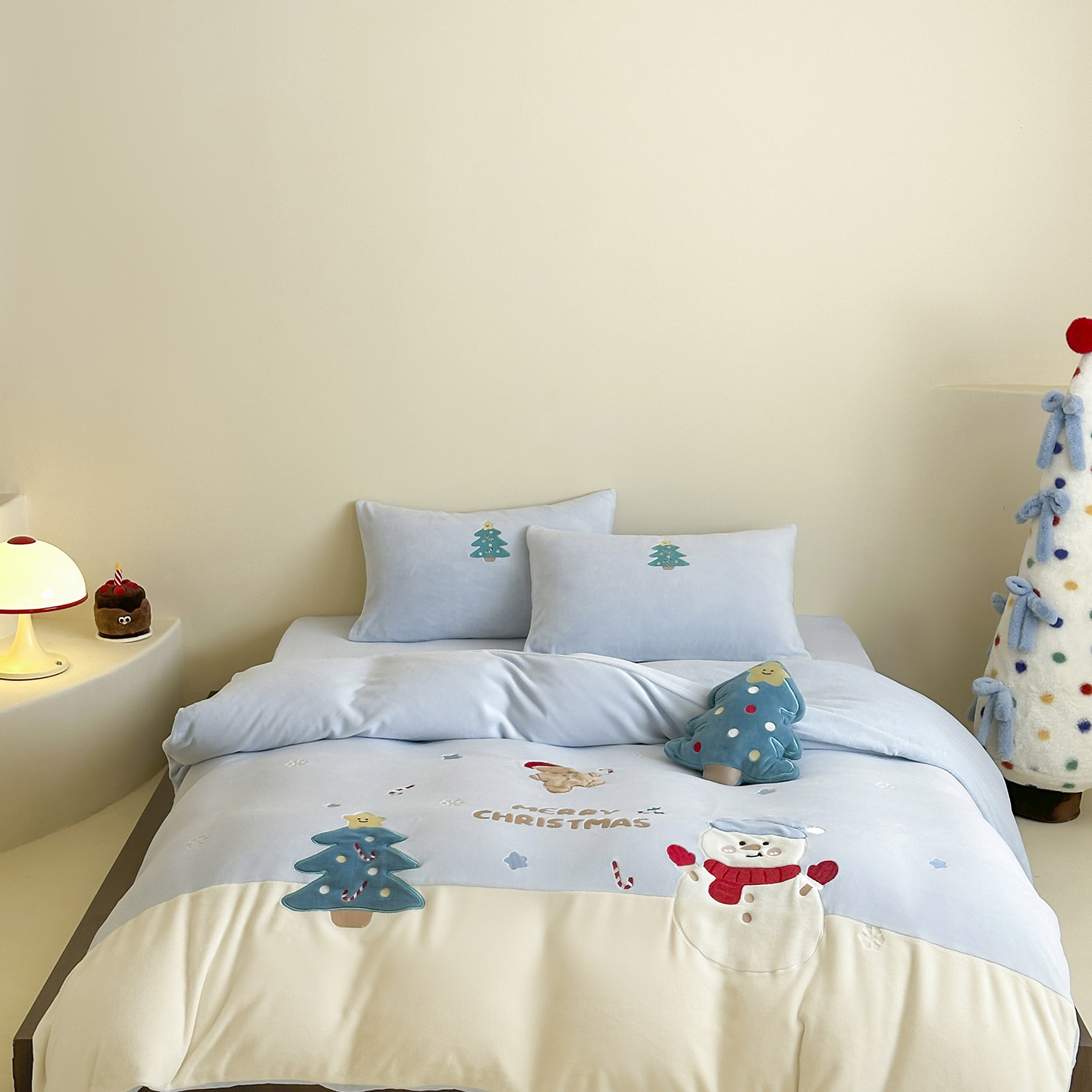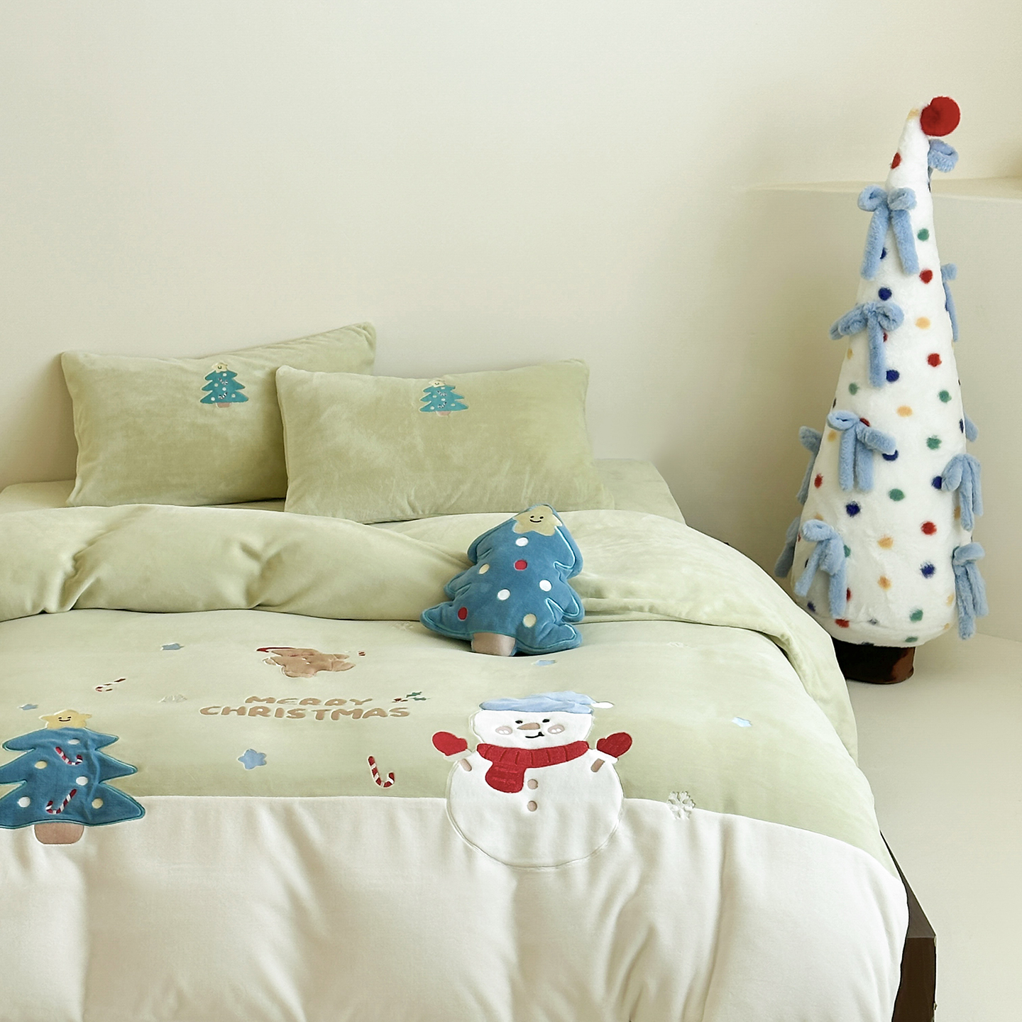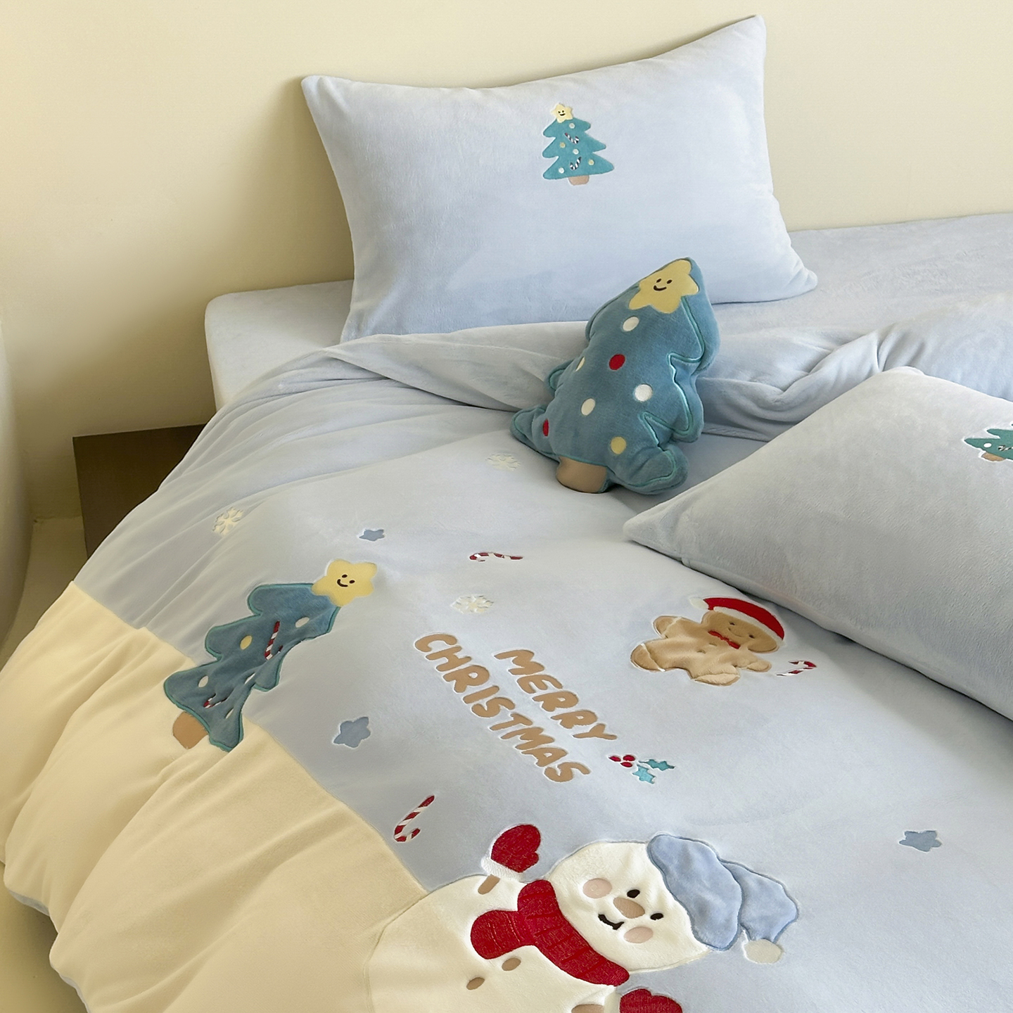 (总)爱丽丝 2025新款230克全消光牛奶绒贴布系列四件套-雪人派对