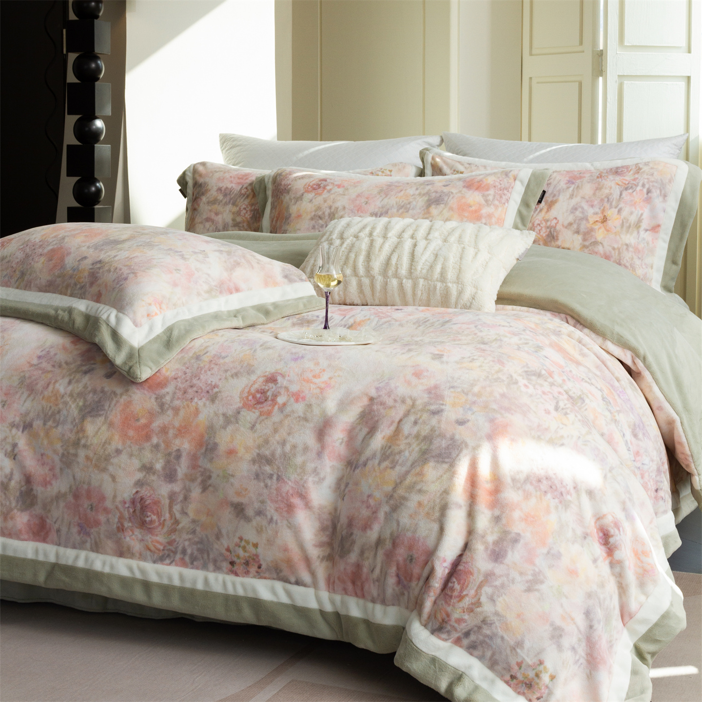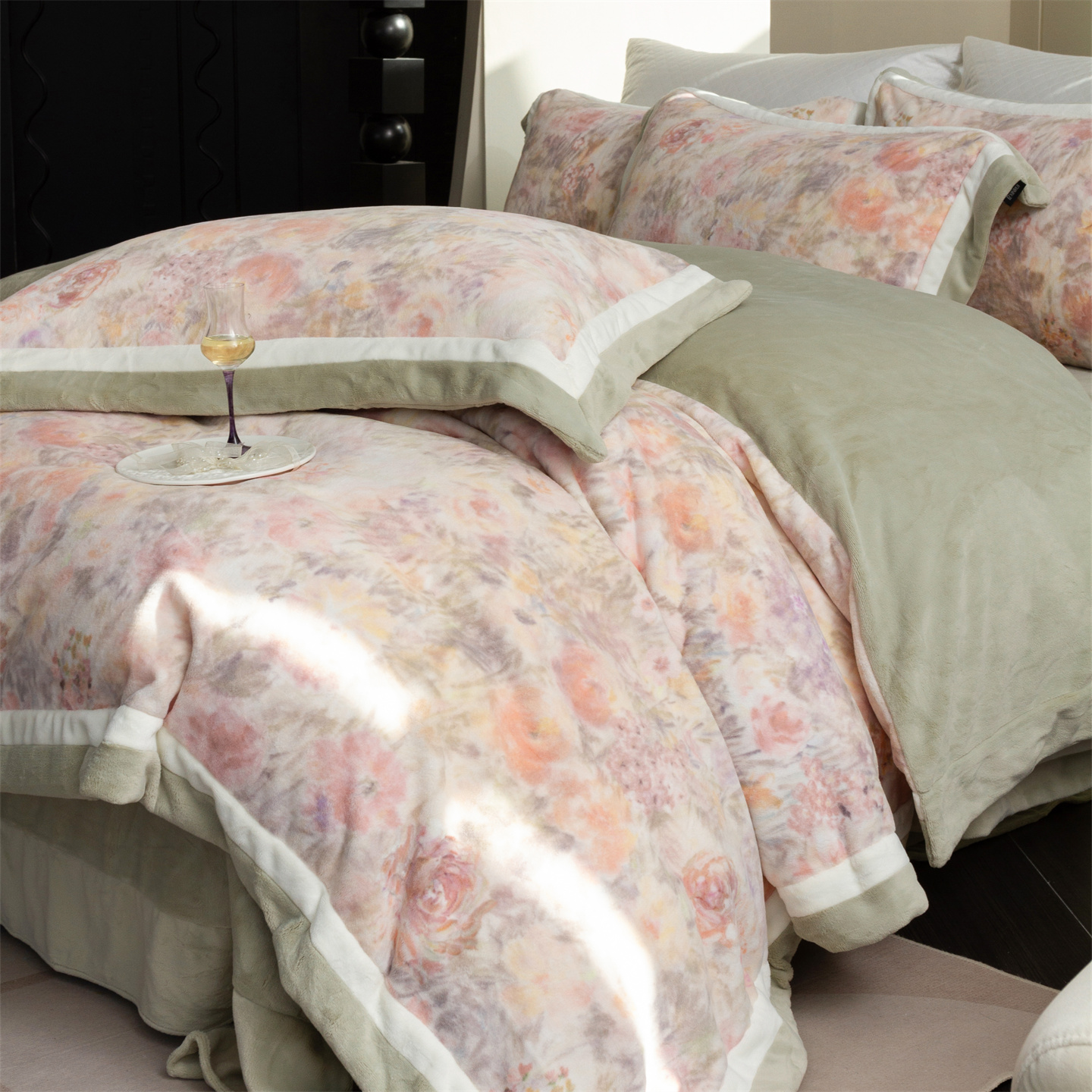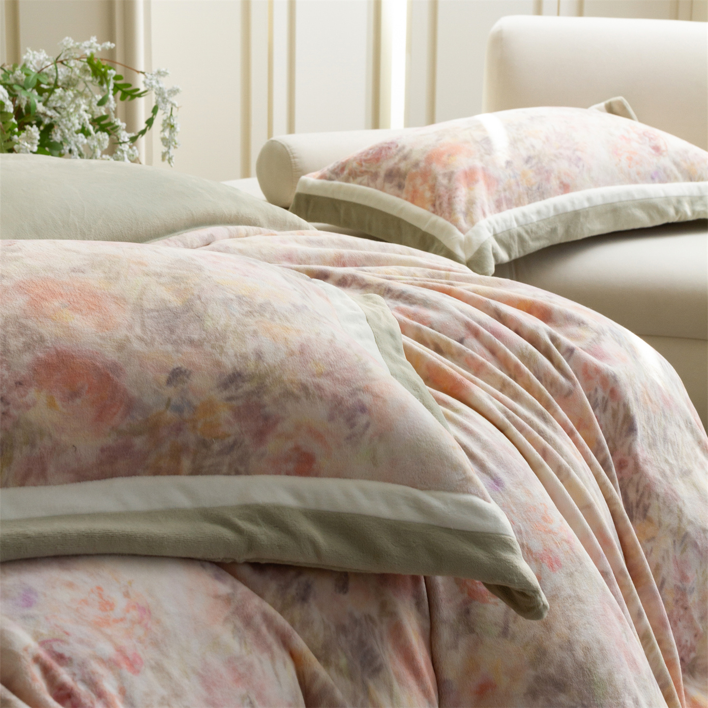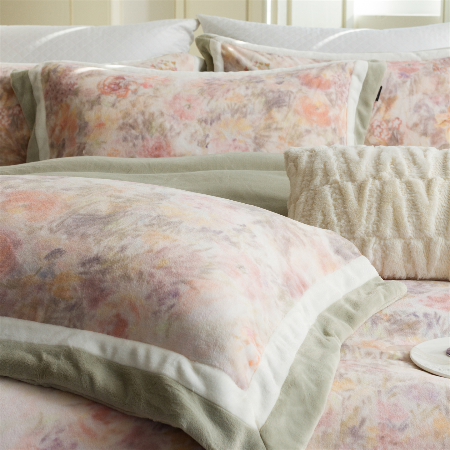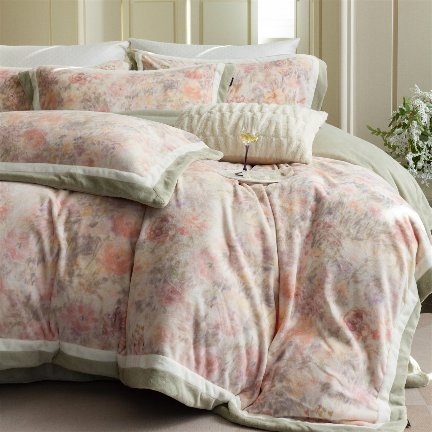 (总)馨蕊家居 2025新款意大利进口高精密刺绣拼角工艺秋冬法式高奢雪貂绒系列-绒雪芙 会员-10【券后控价358/378】,绒雪芙-奶咖,绒雪芙-蔷薇粉,绒雪芙-婉若紫,绒雪芙-月光白