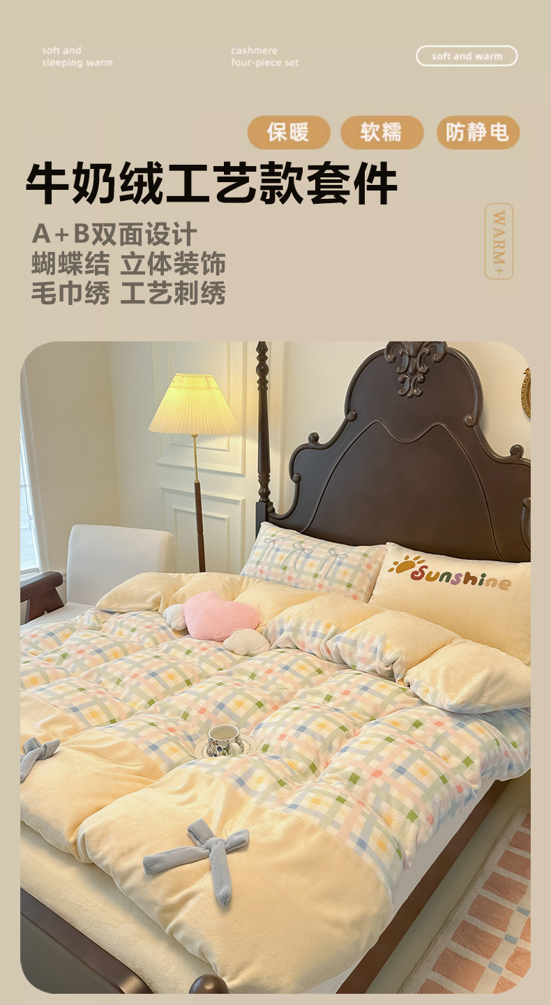 当前位置: 91家纺网 > 商品网购 > 床品套件 > 四件套 > 牛奶绒四件套 > 子钦家纺 2025秋冬新款复古宫廷风加厚牛奶绒蝴蝶结款毛巾绣四件套 复古宫廷风-七彩格