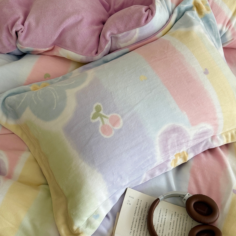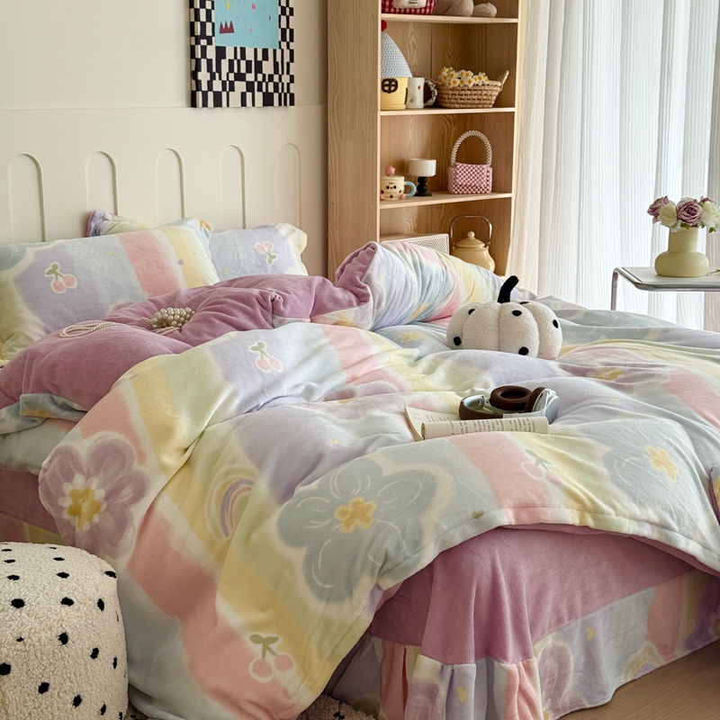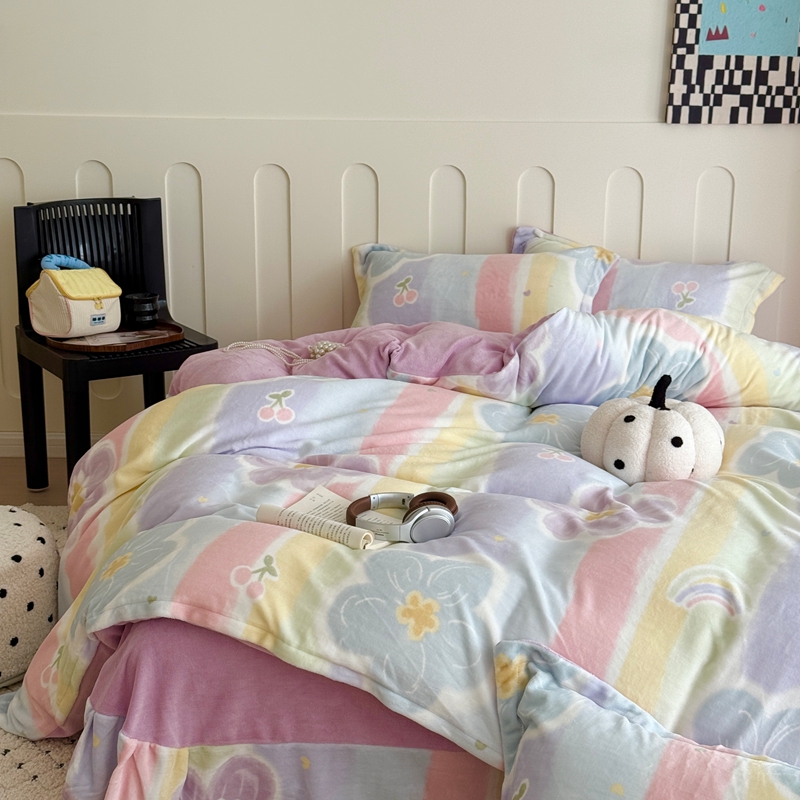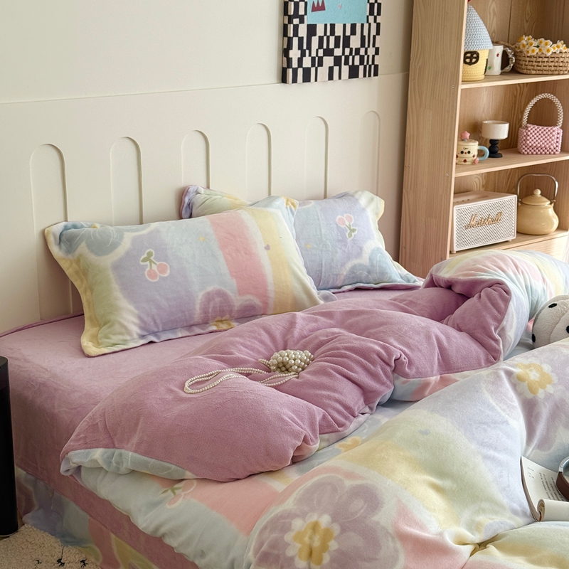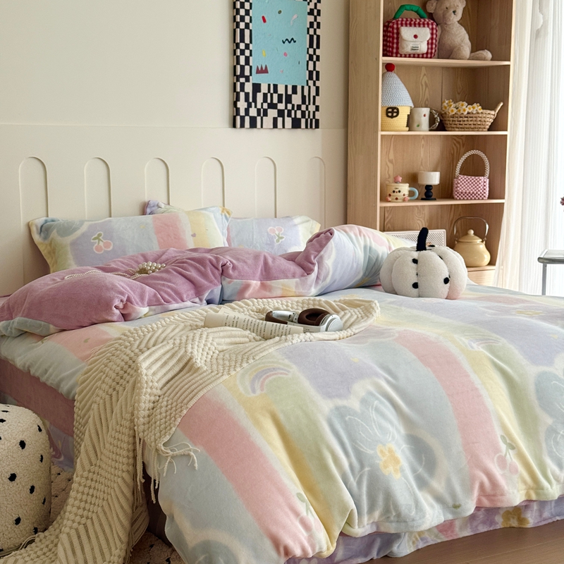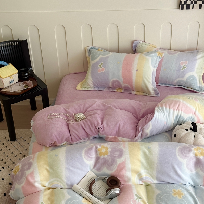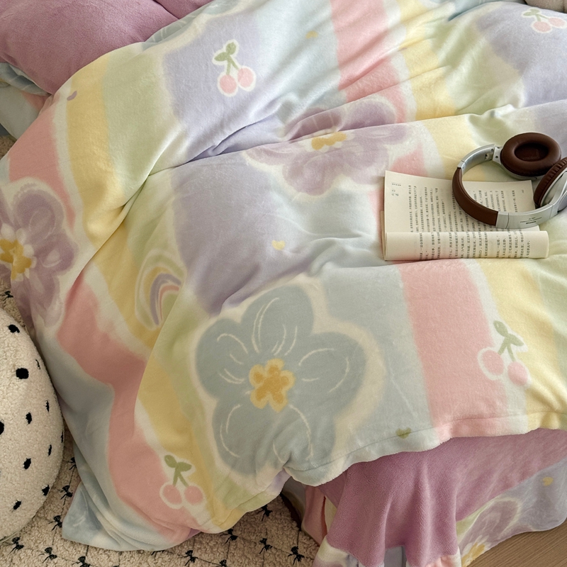 于果 2025新款牛奶绒印花四件套 七彩花梦