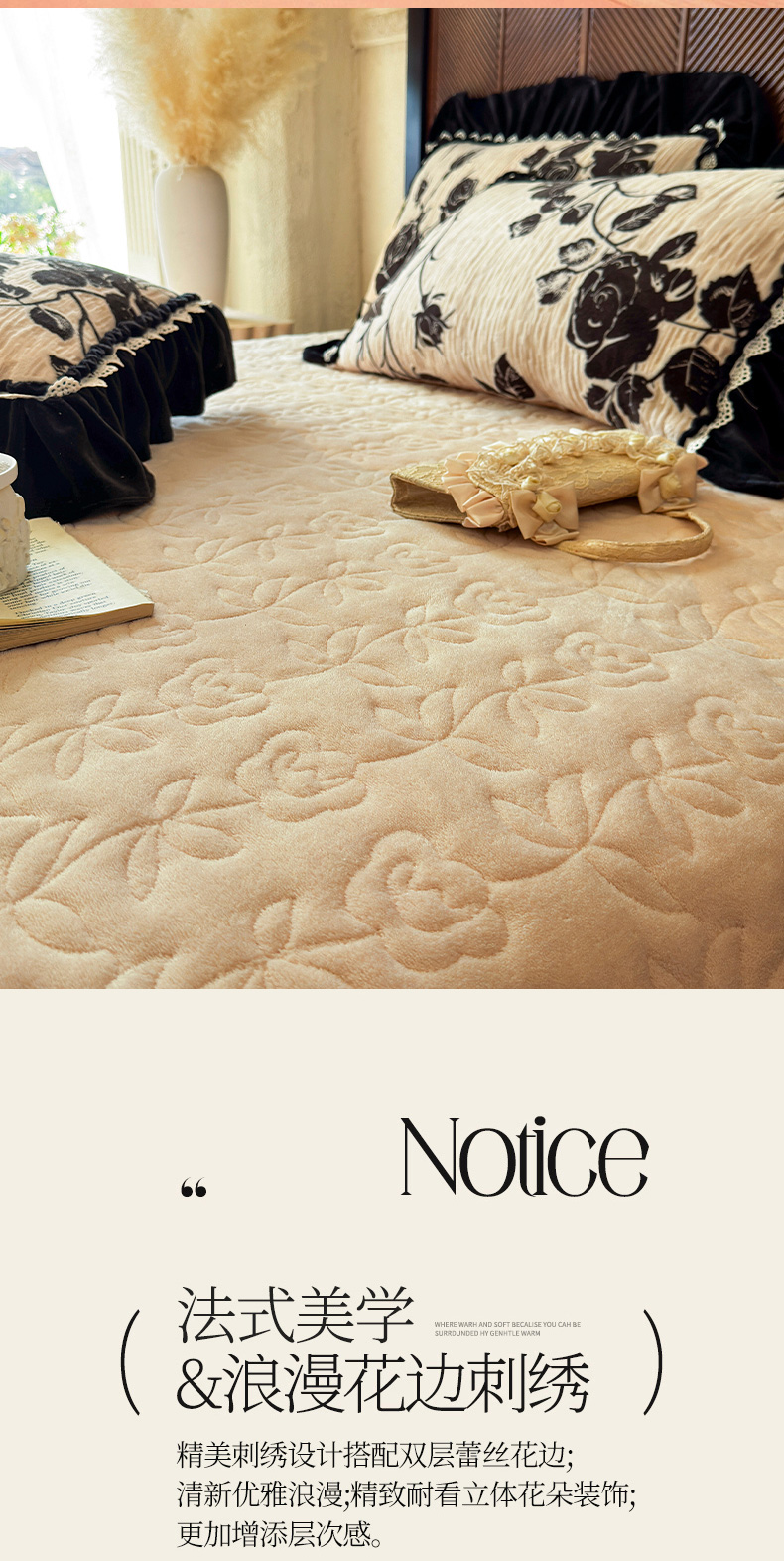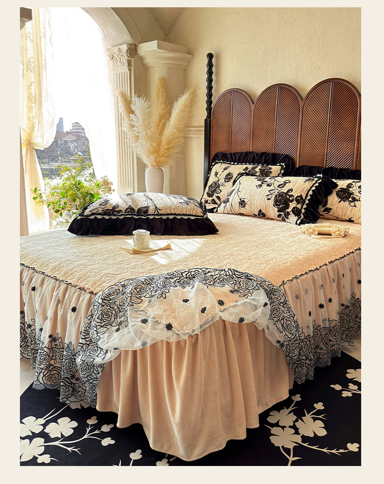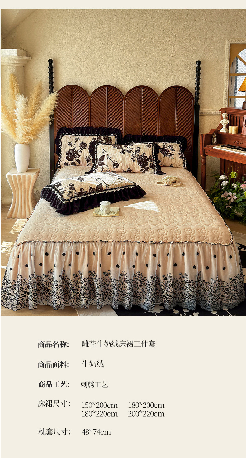 当前位置: 91家纺网 > 商品网购 > 床品套件 > 三件套 > 虹星家纺 2025新款雕花牛奶绒床裙三件套-花溪系列 花溪-奶油黄