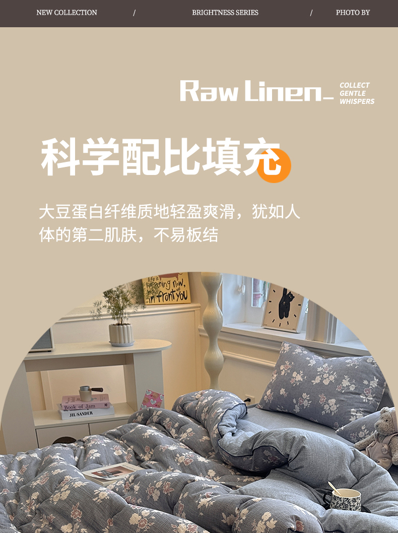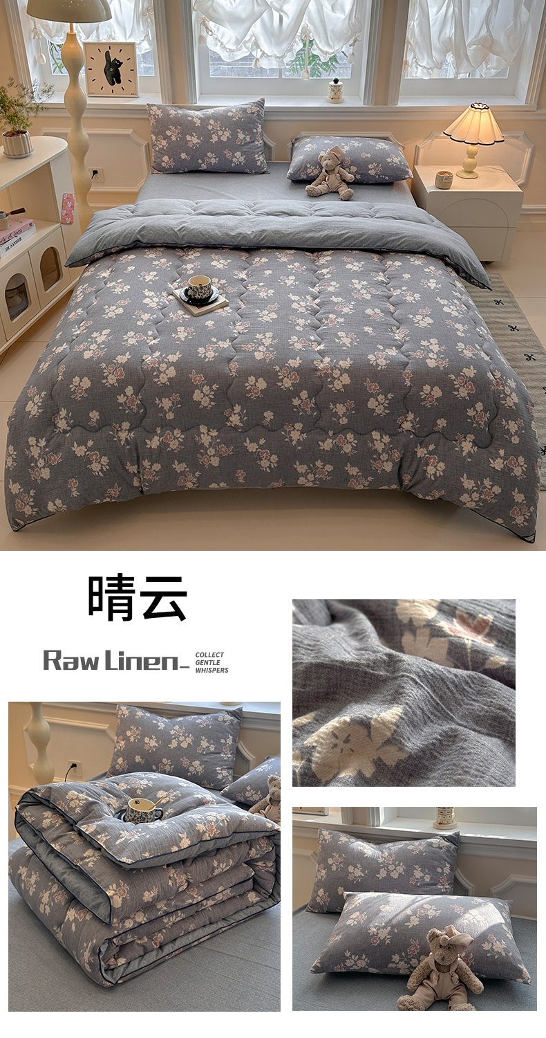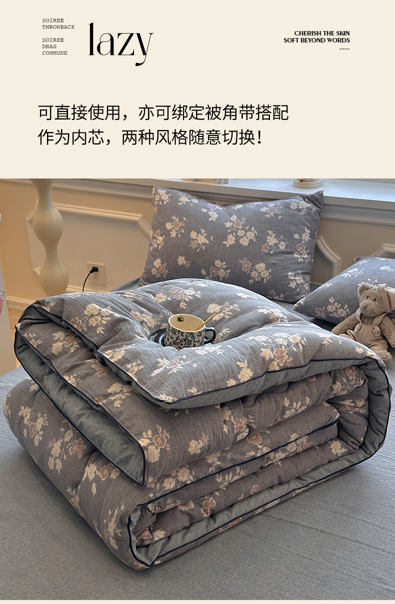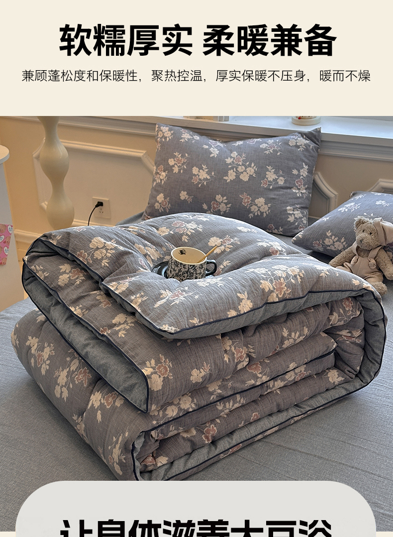 • 91家纺网 家纺一手货源 找家纺 尊妙被业 2025新款复古双层纱大豆被冬被被子被芯 晴云