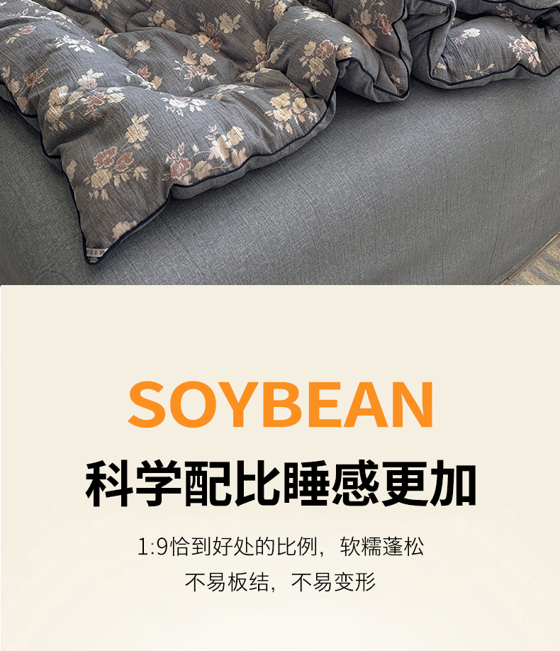 • 填充纤维种类: 大豆蛋白改性聚酯纤维