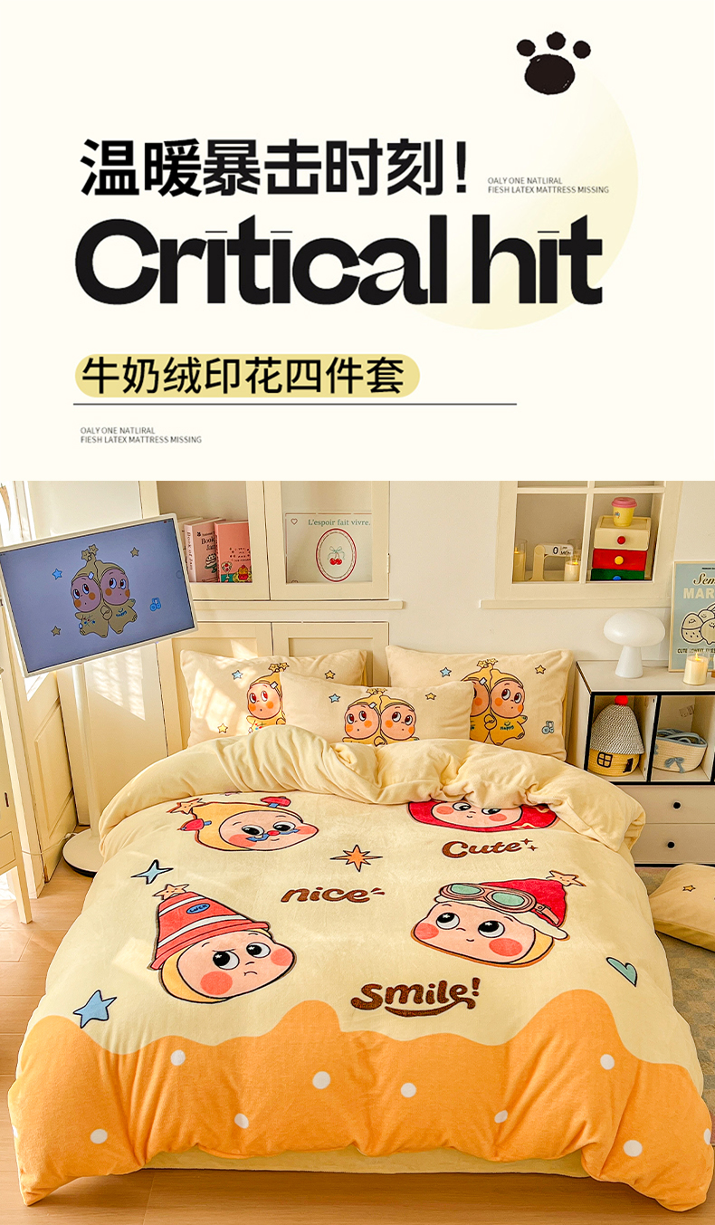 当前位置: 91家纺网 > 商品网购 > 床品套件 > 四件套 > 牛奶绒四件套 > 浩诚 2025新款高克重牛奶绒大版卡通四件套系列 星星乐