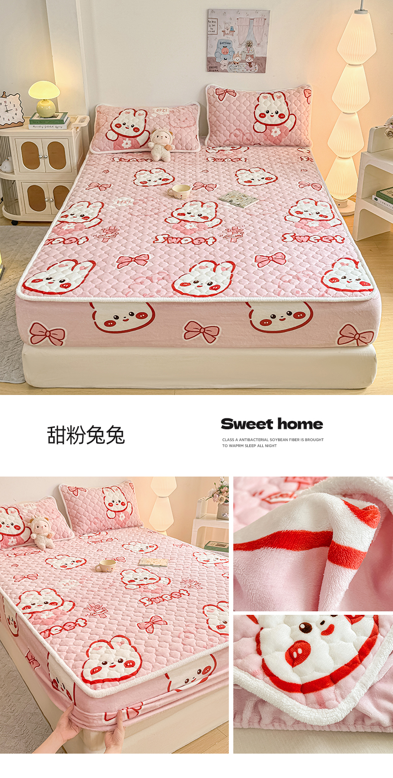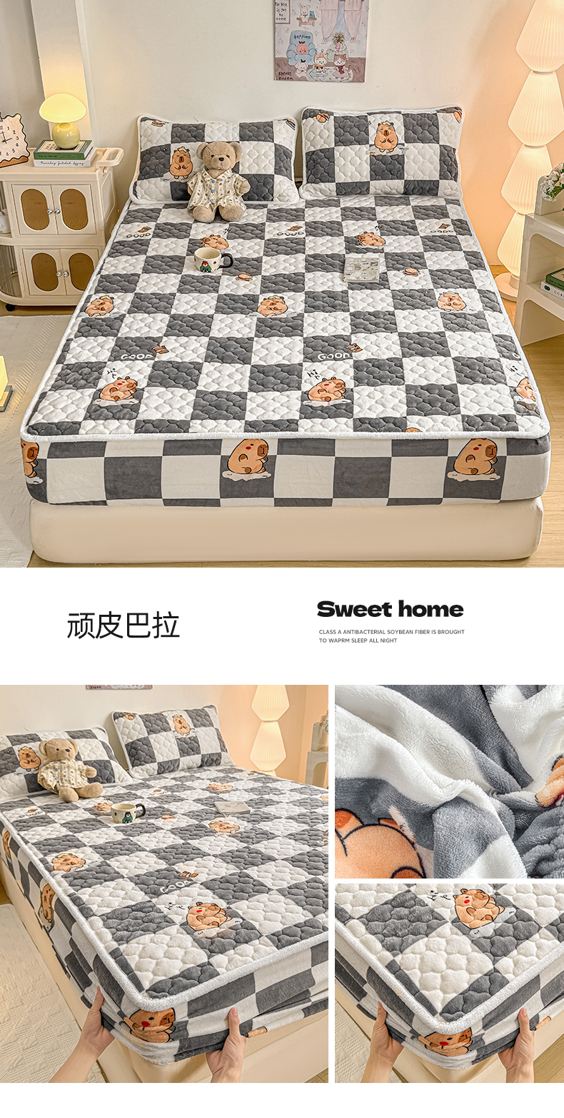 商品名称:(总)小叮当家纺仓储工厂店 2025新款A类200g高克重牛奶绒印花夹棉床笠单品床笠床笠单件(提供买家秀)