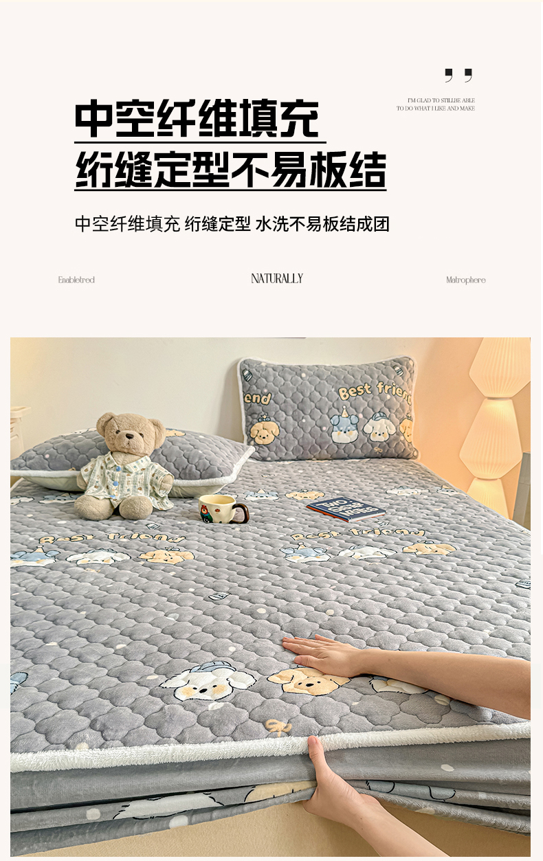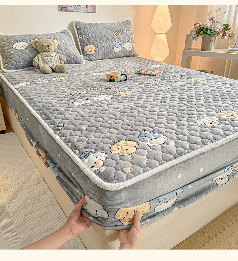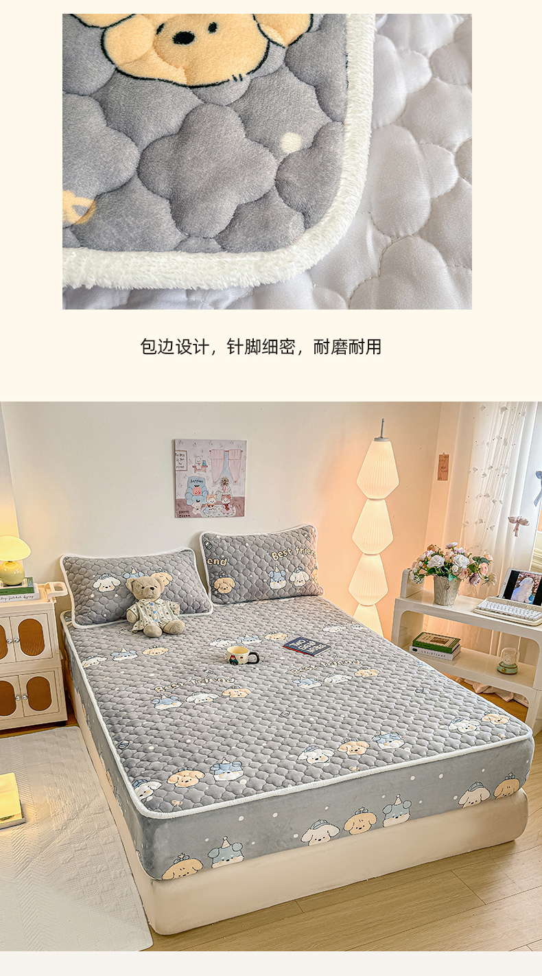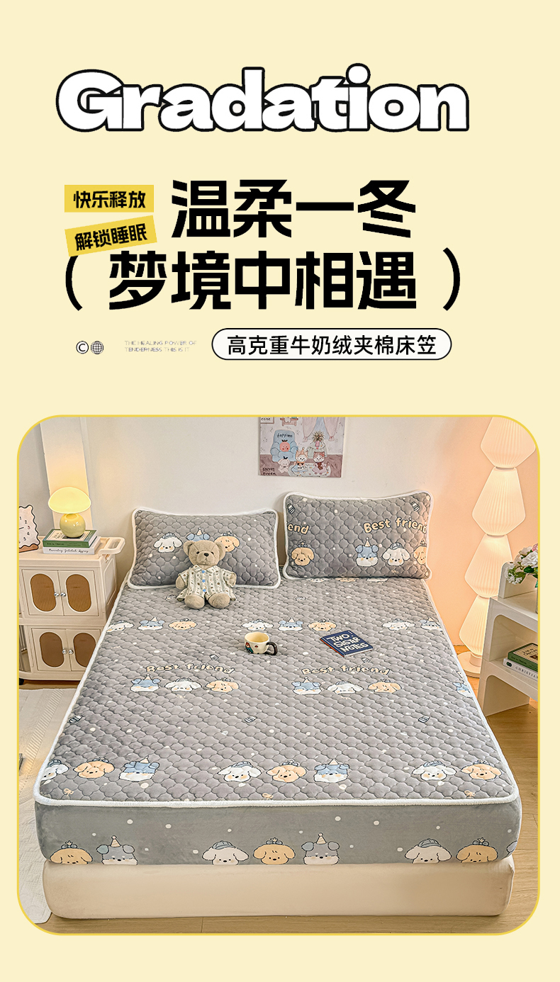 小叮当家纺仓储工厂店 2025新款A类200g高克重牛奶绒印花夹棉床笠单品床笠床笠单件(提供买家秀) 淘气狗狗