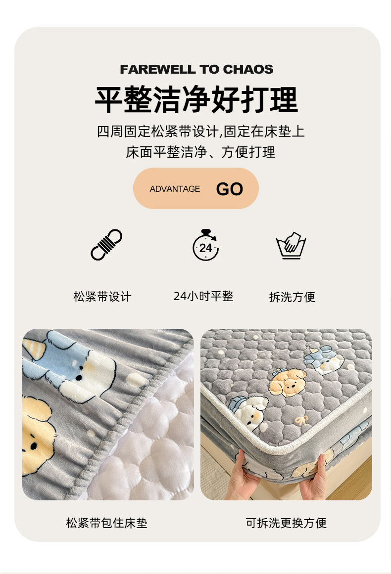 商品名称:小叮当家纺仓储工厂店 2025新款A类200g高克重牛奶绒印花夹棉床笠单品床笠床笠单件(提供买家秀) 淘气狗狗