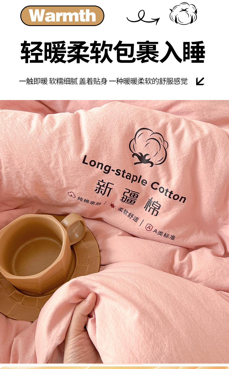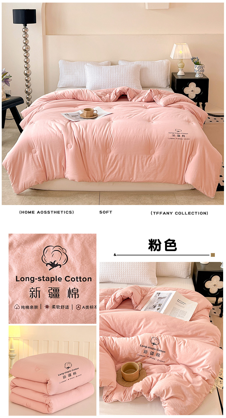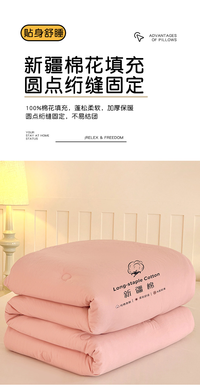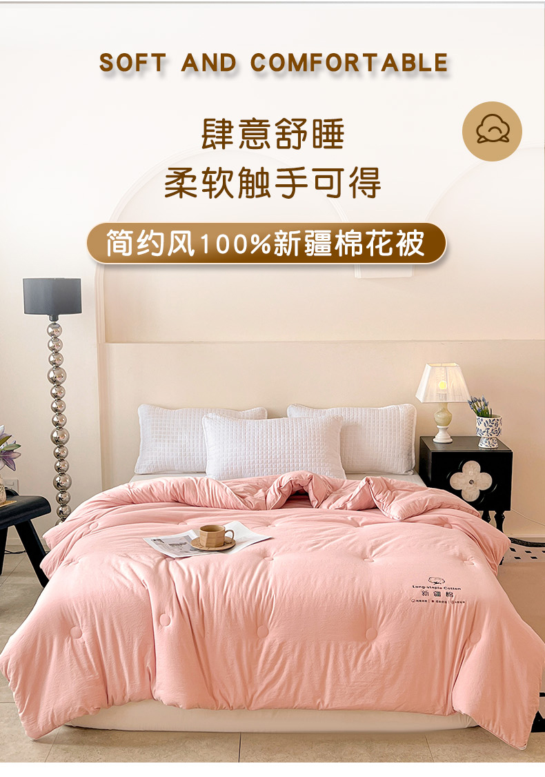 小叮当家纺仓储工厂店 (买家秀 爆款花型 不断货)2025新款简约风100%新疆棉花被被子被芯 新疆棉-粉色