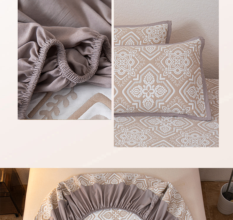 小叮当家纺仓储工厂店 (买家秀 爆款花型 不断货)2025新款舒适简约A类全棉三层纱单品床笠单件床笠 卡曼洛-深棕