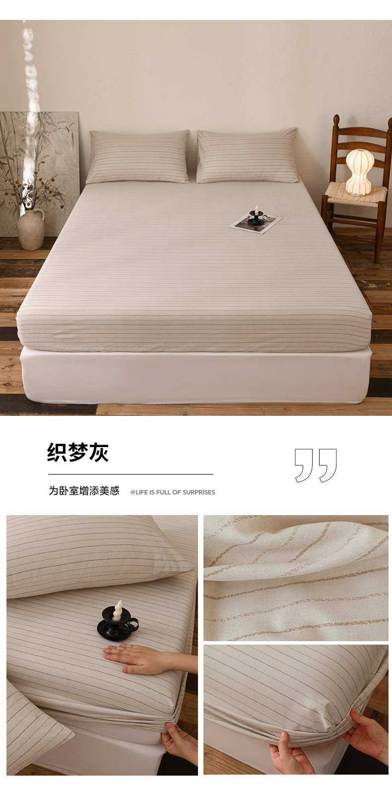 商品名称:小叮当家纺仓储工厂店 (买家秀 爆款花型 不断货)2025新款良品磨毛单床笠床笠单件 律动格
