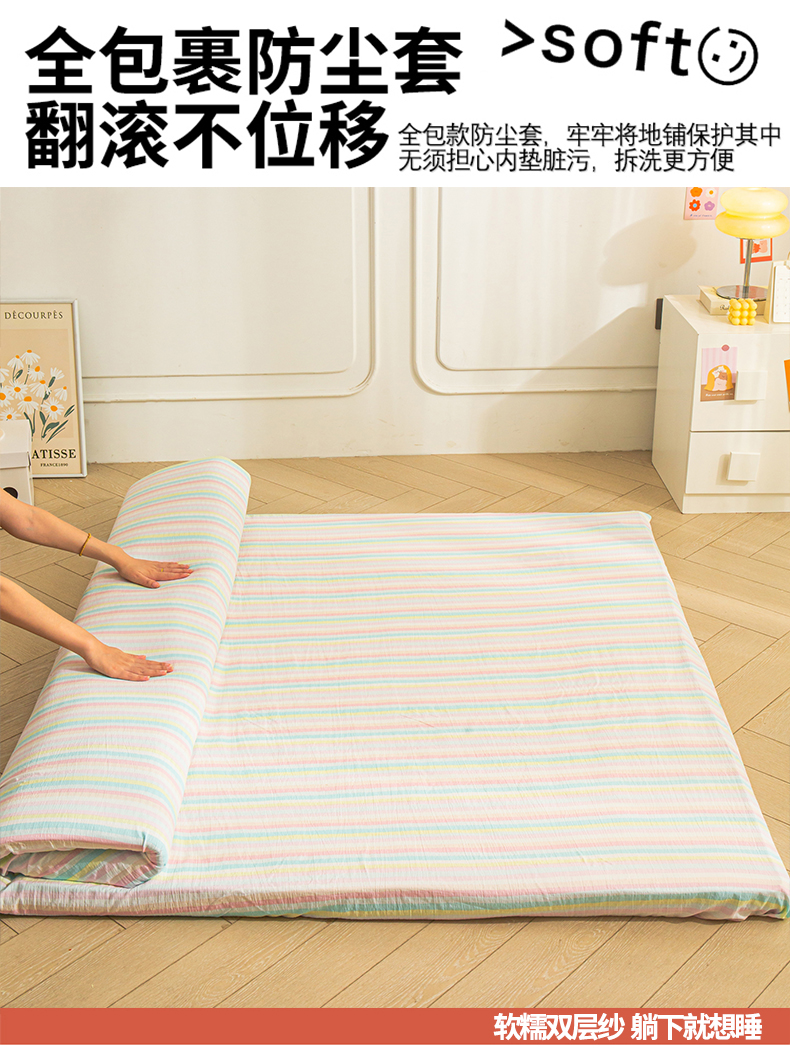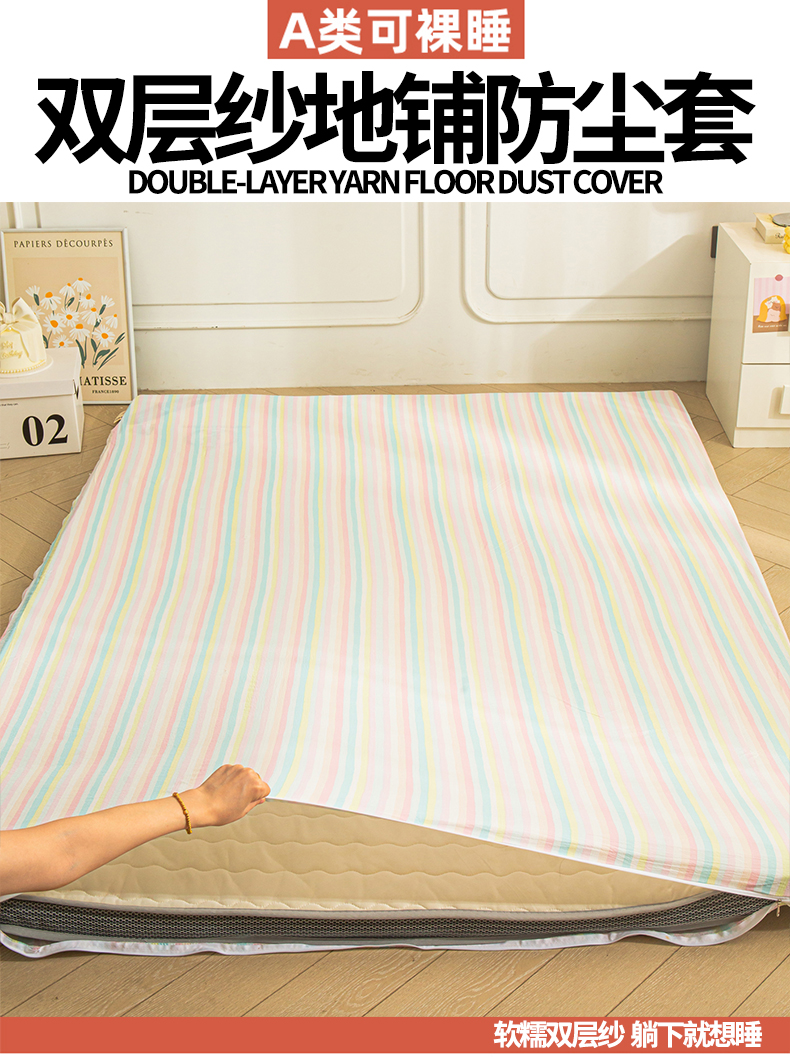 当前位置: 91家纺网 > 商品网购 > 床上用品 > 床垫套 > 小叮当家纺仓储工厂店 【长期供货】2025新款双层纱地铺防尘套【支持小批量定制】 S彩虹