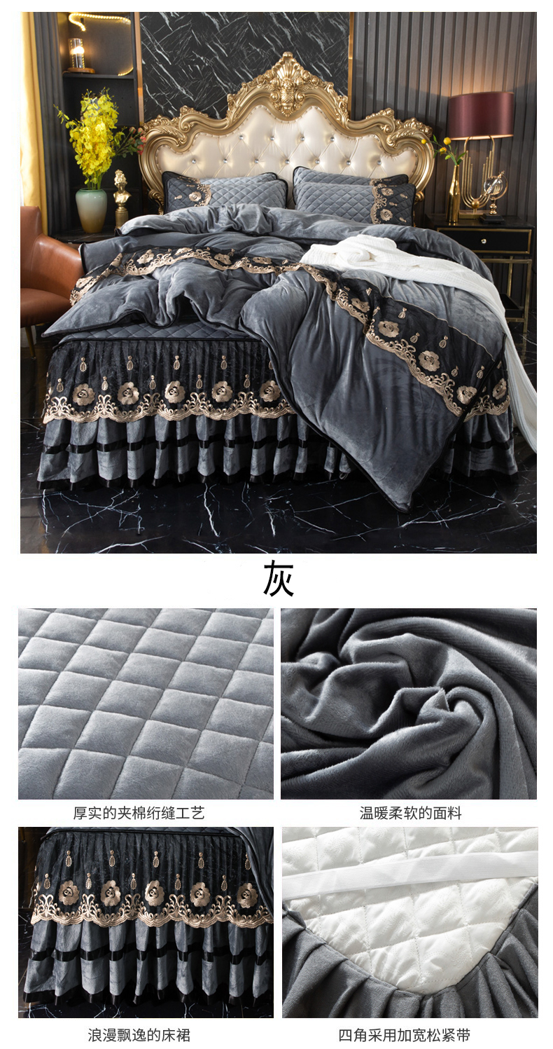 当前位置: 91家纺网 > 商品网购 > 床品套件 > 四件套 > 水晶绒四件套 > 小叮当家纺仓储工厂店 2025新款水晶绒夹棉床裙四件套 墨绿