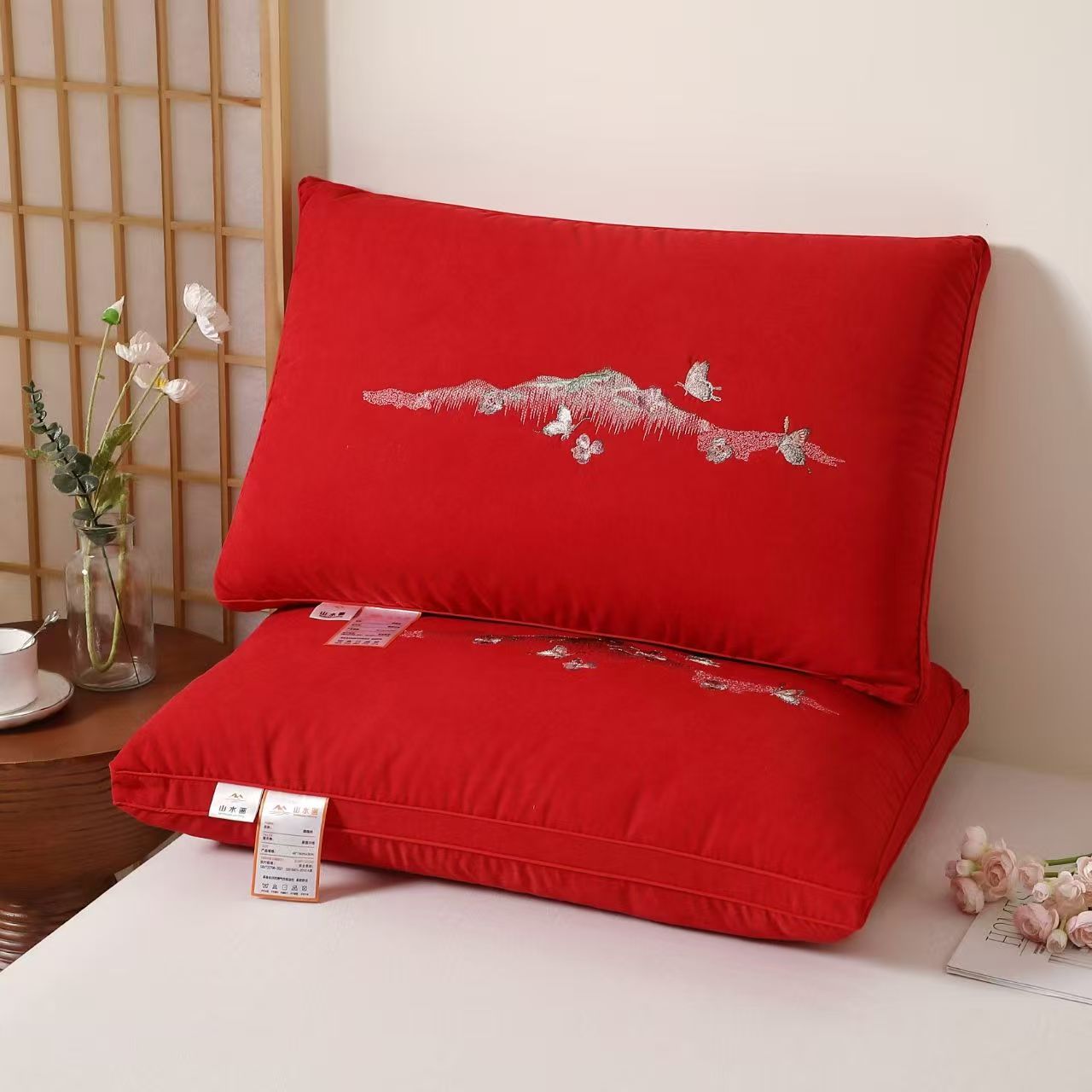 (总)剑桥枕业 2024新款豆豆绒热熔定型枕芯 大红结婚枕 高枕硬枕护颈枕头枕芯,兰色,红色,豆沙,灰色,包装