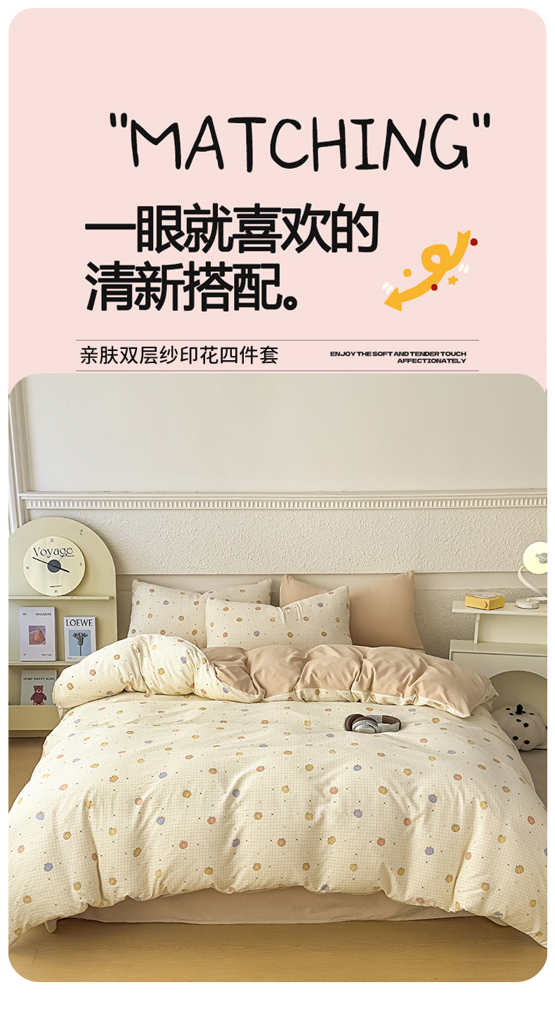(总)麦乐迪 2026新款10A抗菌古法水洗仿棉云感纱四件套,紫花软梦,云间小熊,樱花软兔,桃桃小熊,柔纹碎花,青柠小格,苹果星星人,奶熊条纹,奶黄碎花,梦游乐园,绿格蝴蝶结,绿粉花簇,蓝白碎花,简约小马,海洋星球,格纹木马,格纹粉猫,格间小狗,粉纹花束,粉间小物,丛林小兔,春日碎花,菠萝小象,薄雾花影,kt派对