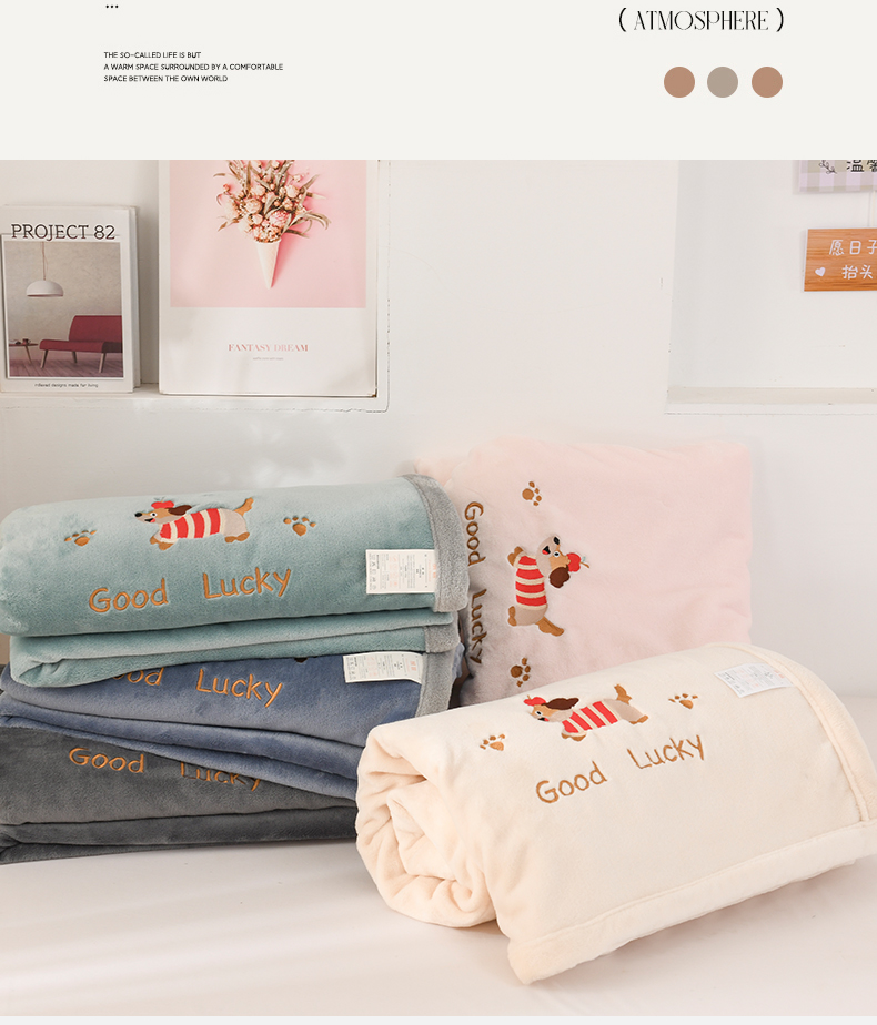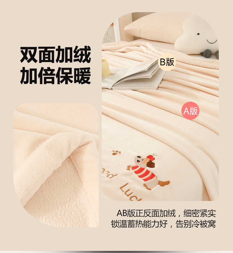 (总)恋绒家纺 2025新款刺绣款双面绒毛毯毯子盖毯,幸运狗-湖蓝,幸运狗-米白,幸运狗-浅粉,幸运狗-深灰,幸运狗-深蓝