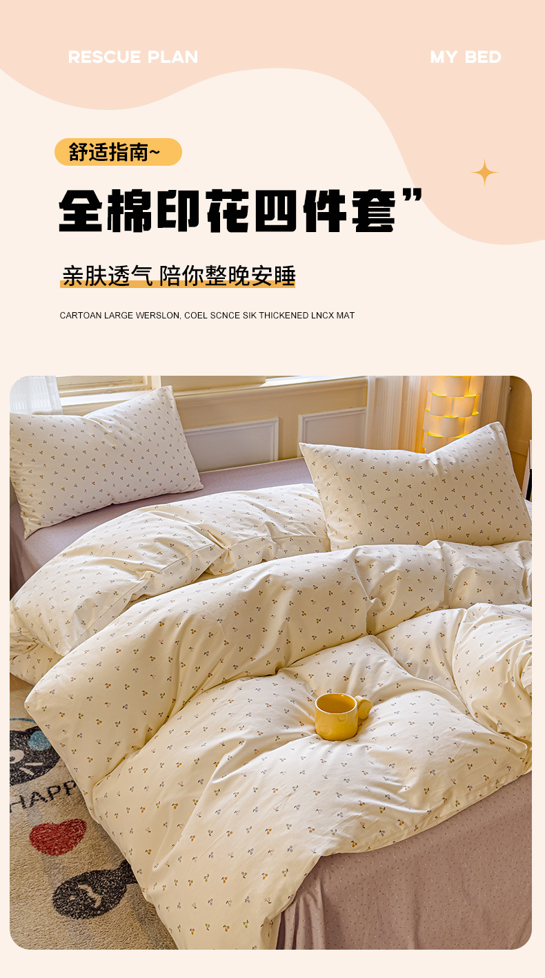 当前位置: 91家纺网 > 商品网购 > 床品套件 > 四件套 > 全棉普通四件套 > 感遇家纺 2026新款全棉纯棉印花13372四件套 缤纷樱桃