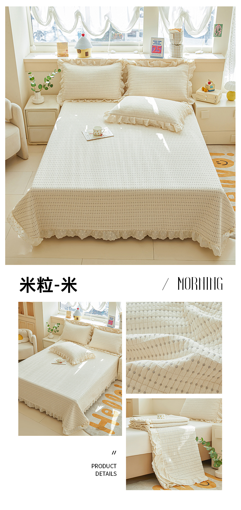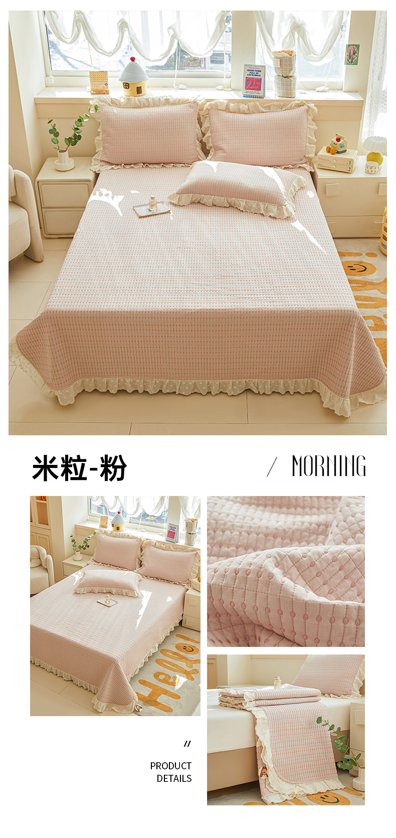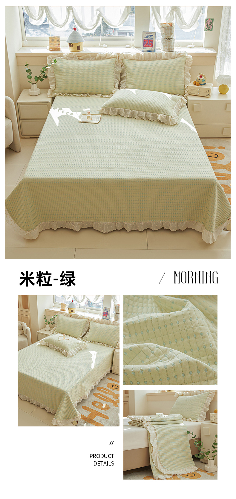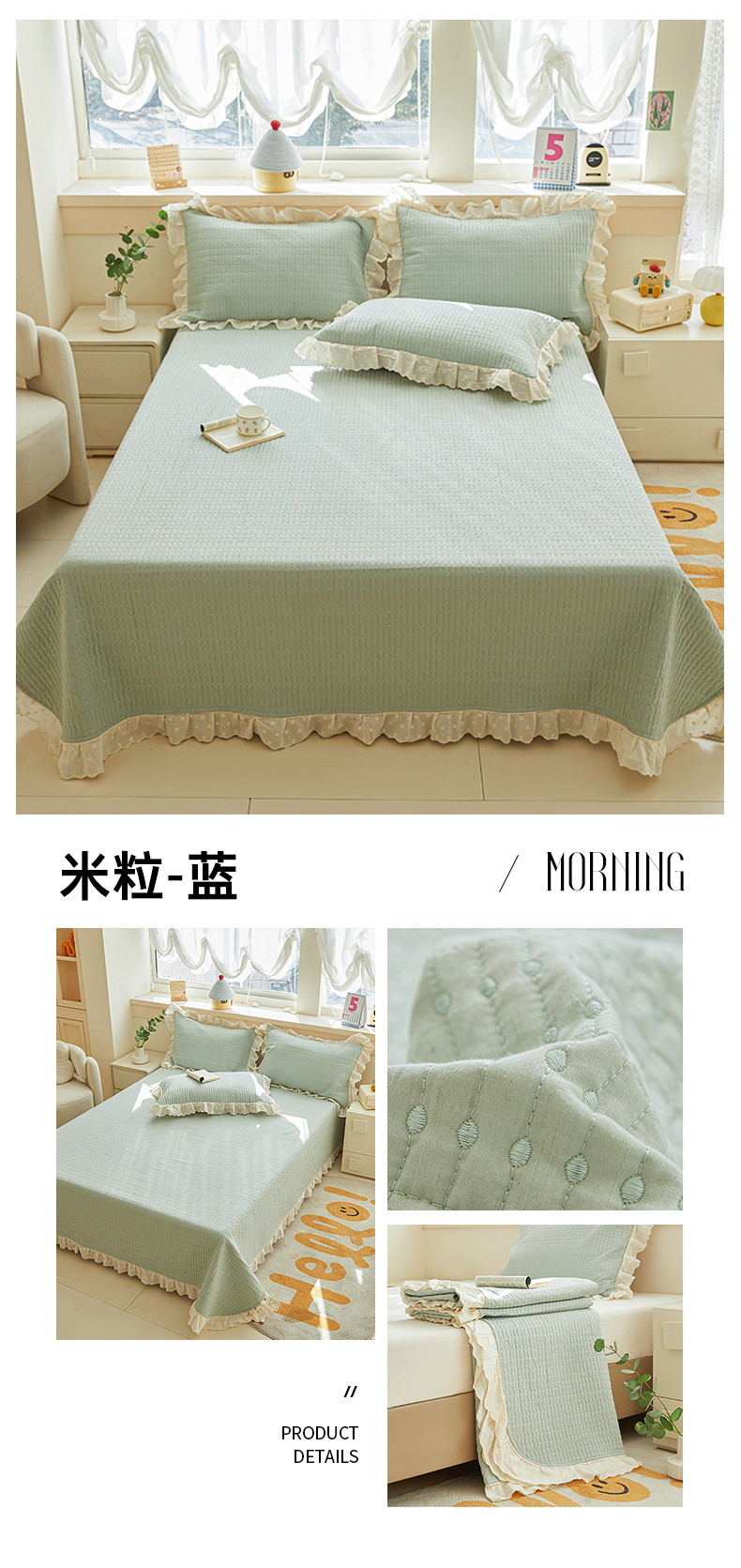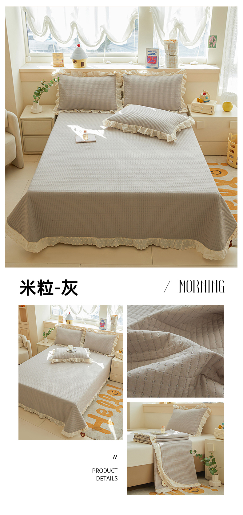 (总)源舜家纺 2025新款色织棉简约韩系花边床盖三件套,简约灰,简约粉,简约绿,简约驼,简约蓝