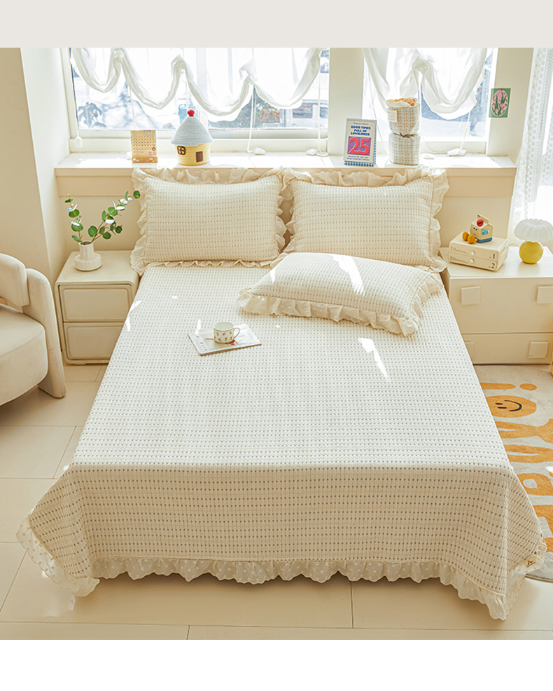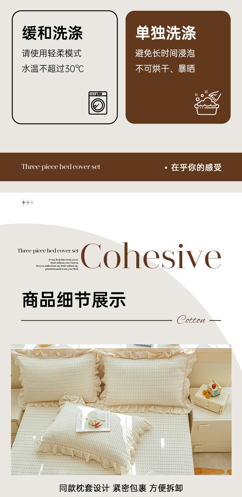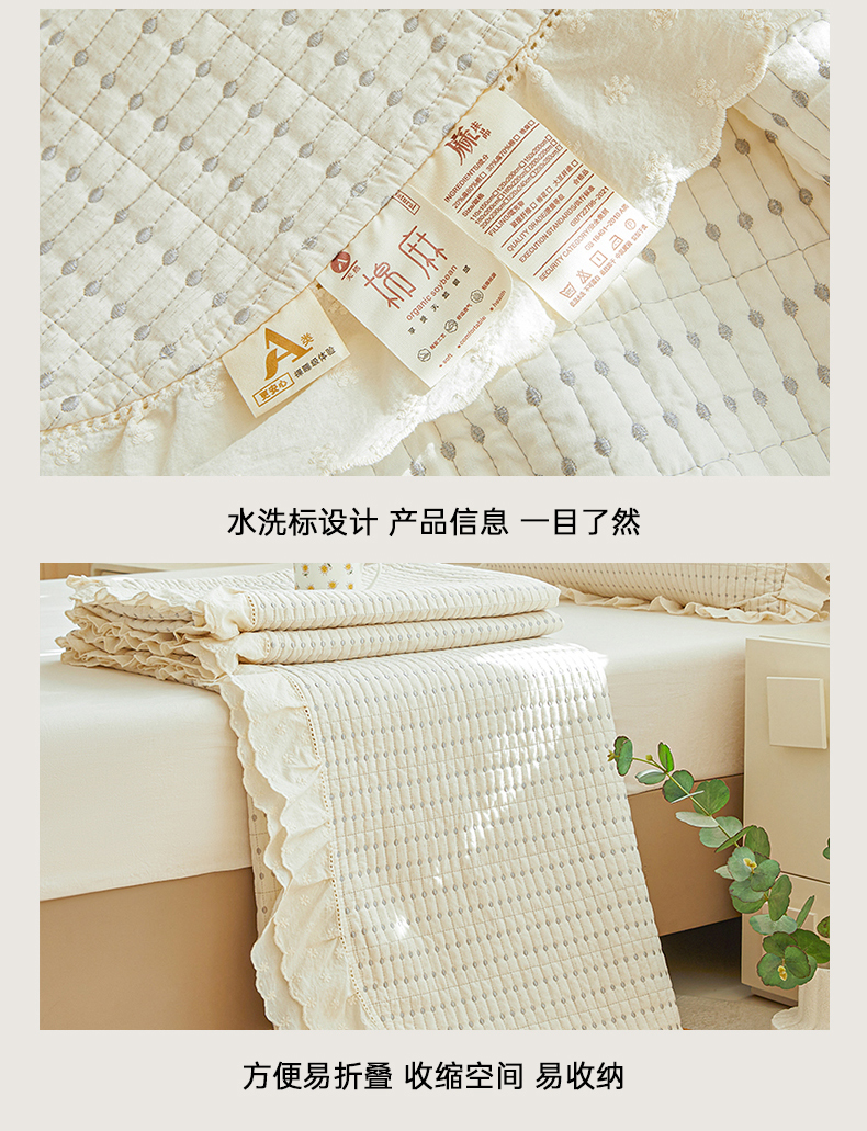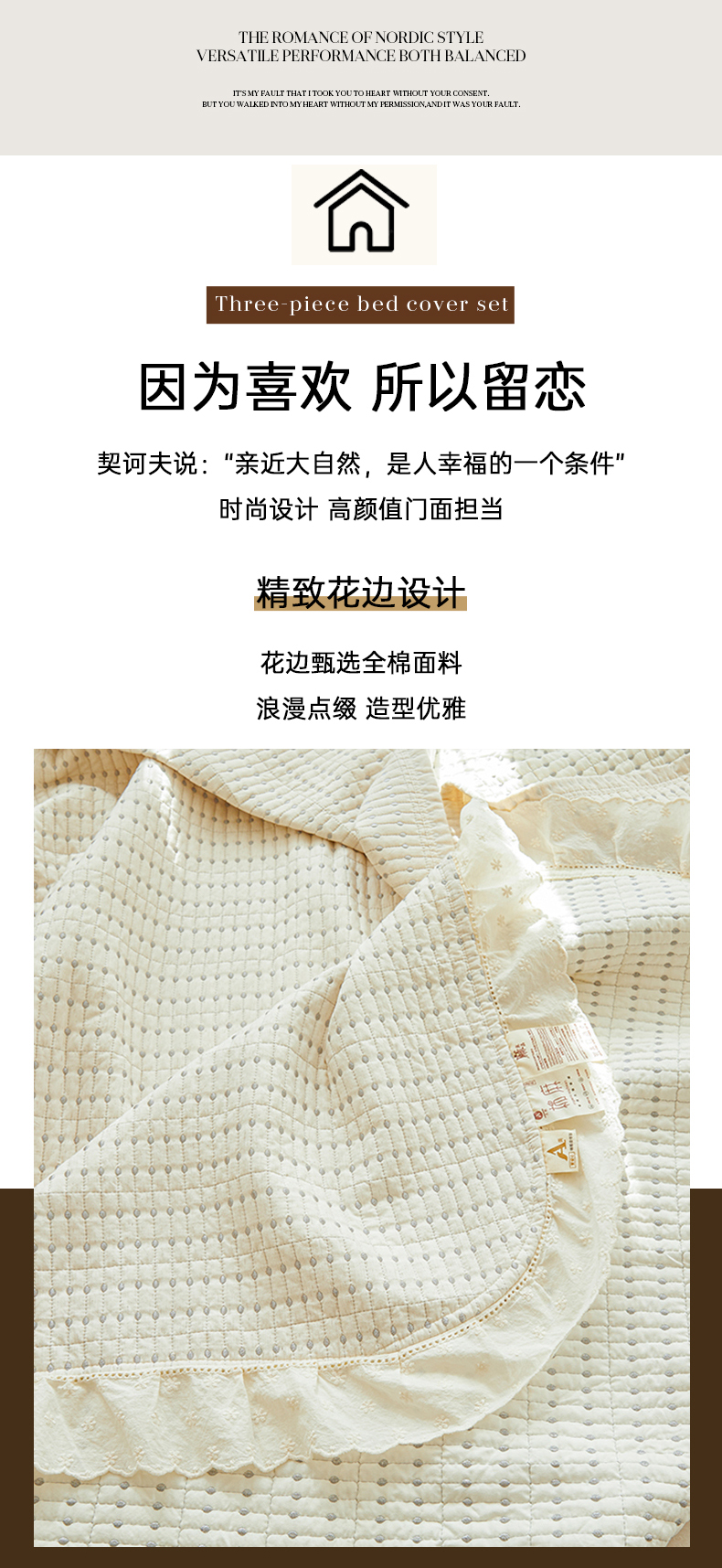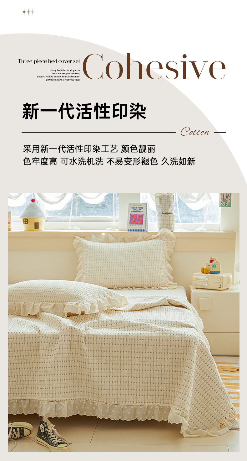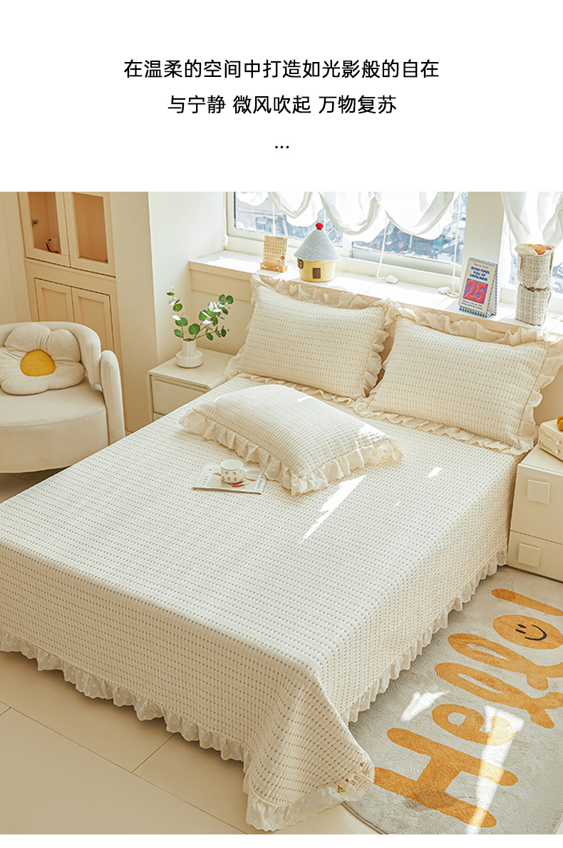 (总)源舜家纺 2025新款色织棉简约韩系花边床盖三件套,简约灰,简约粉,简约绿,简约驼,简约蓝
