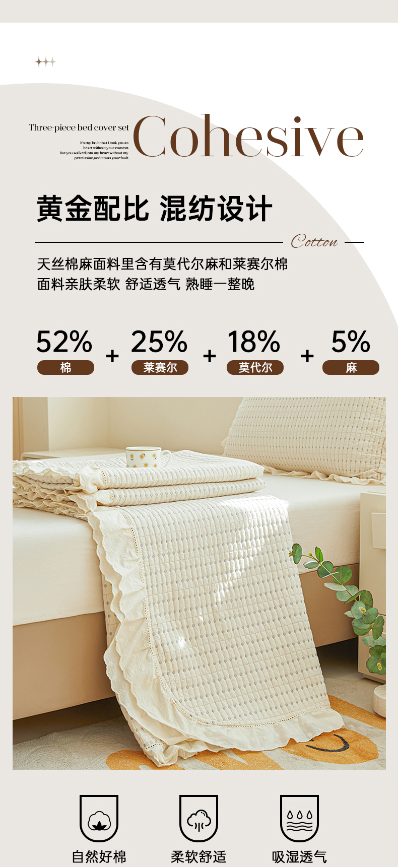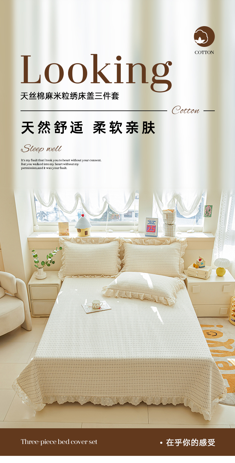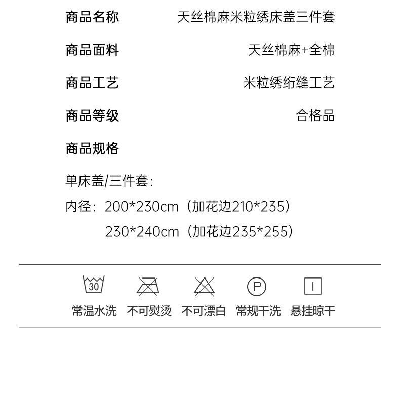 商品名称:(总)源舜家纺 2026新款天丝棉麻莱赛尔莫代尔天丝棉米粒绣床盖三件套