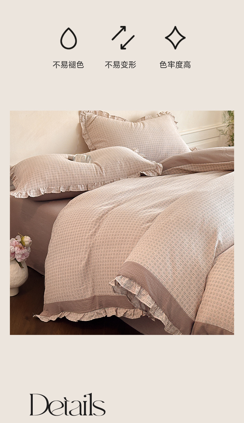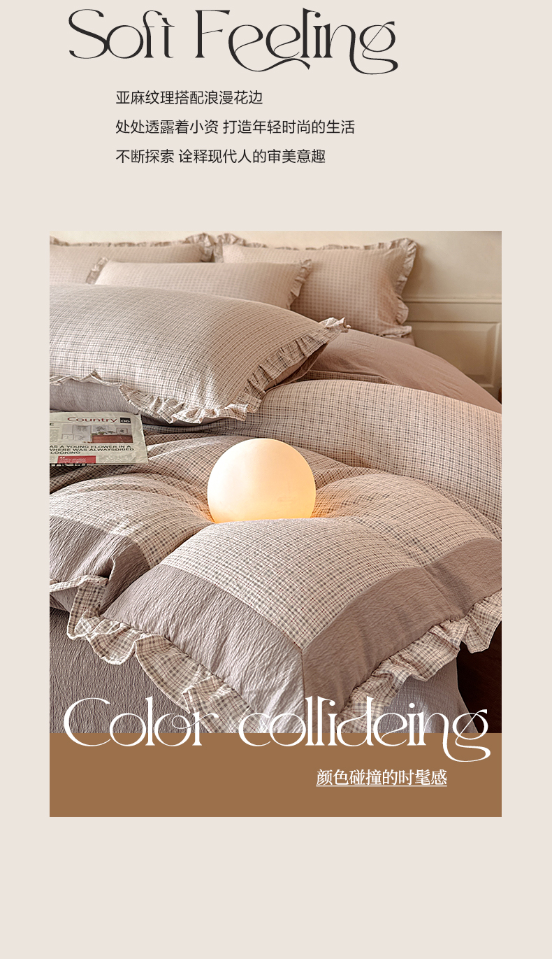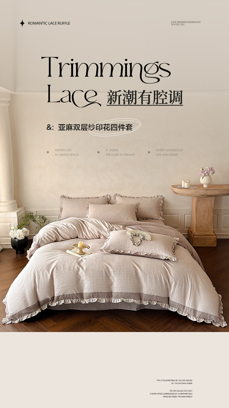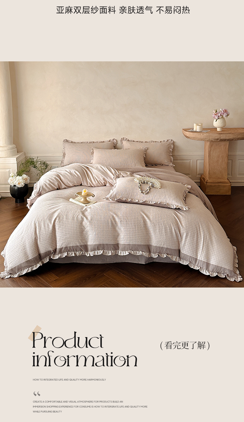 (总)遇见家居生活馆 2025新款亚麻双层纱印花四件套-往事,往事-枫叶红,往事-复古咖,往事-奶油黄,往事-浅灰色,往事-深灰色