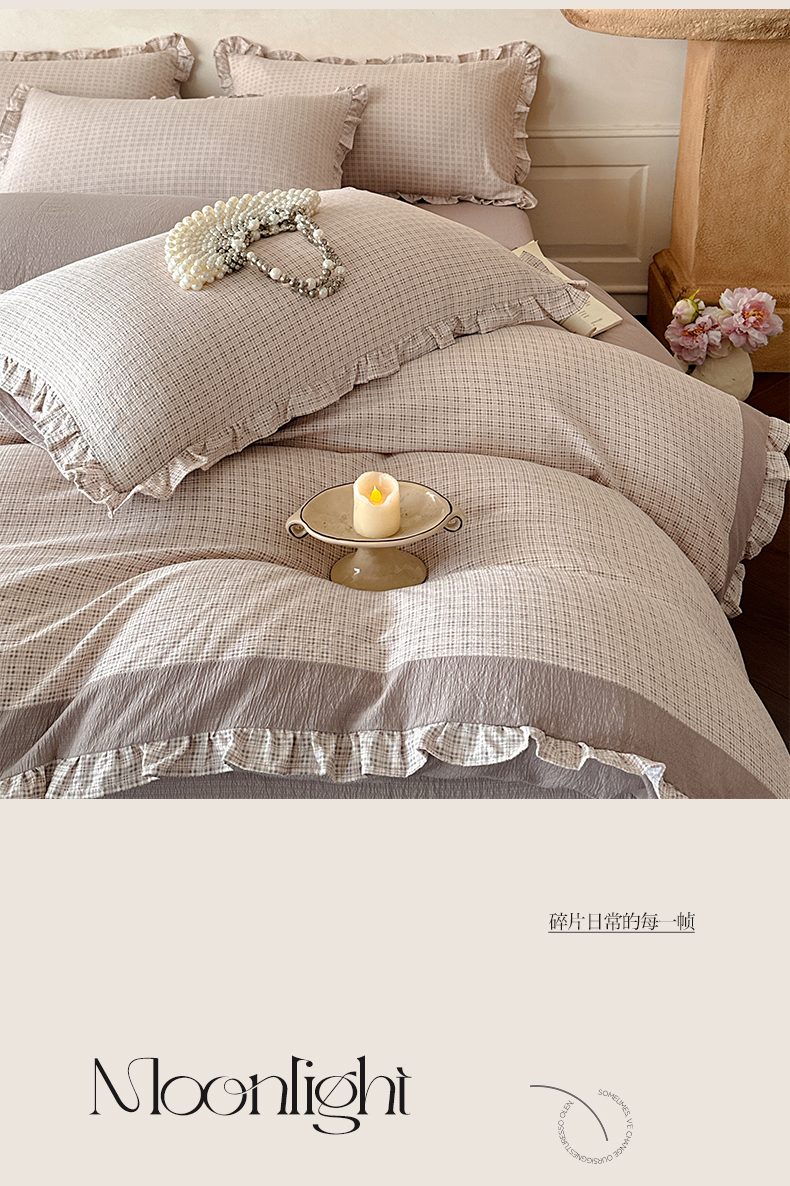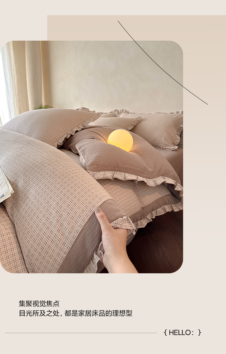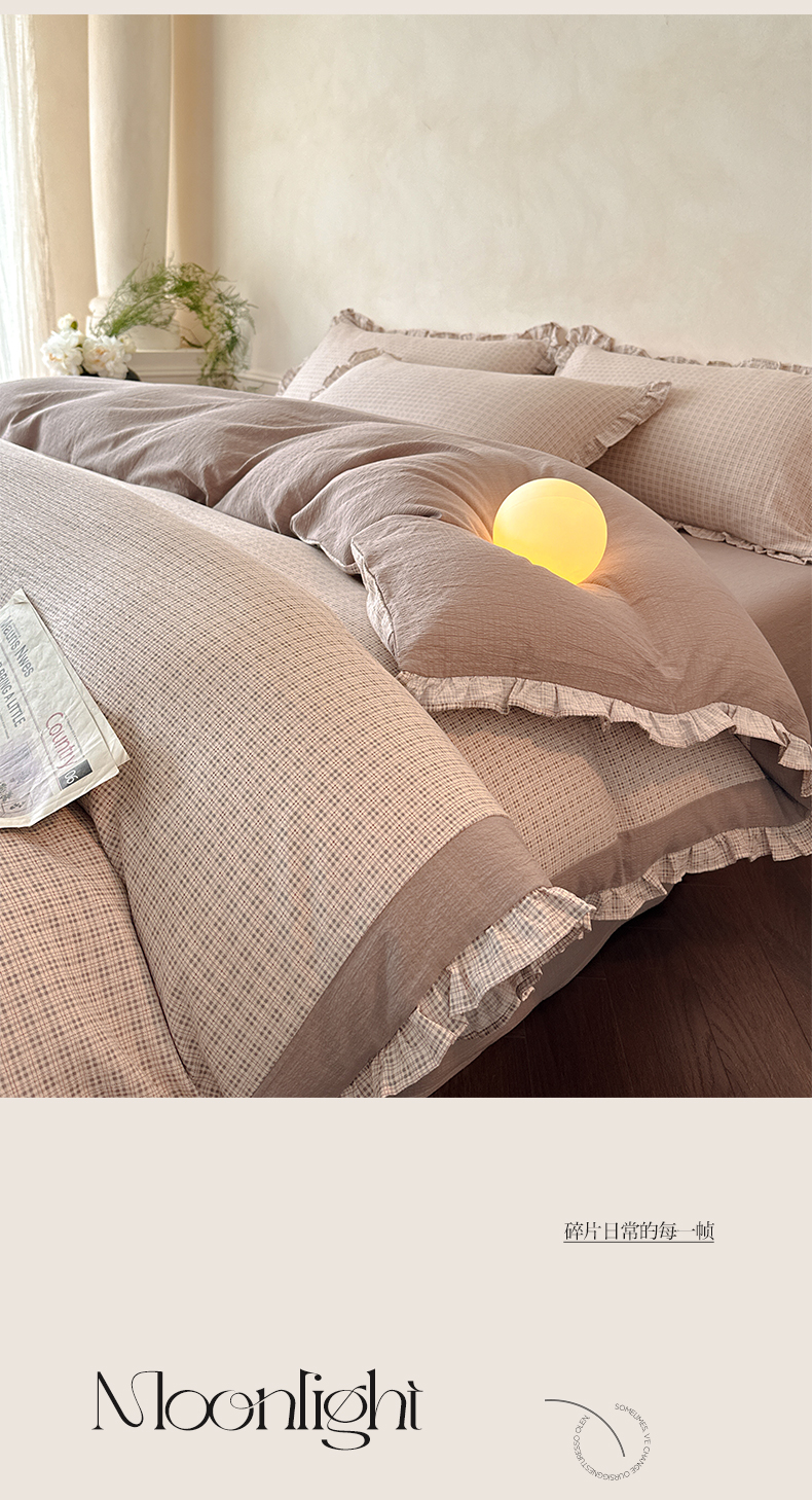 遇见家居生活馆 2025新款亚麻双层纱印花四件套-往事 往事-复古咖
