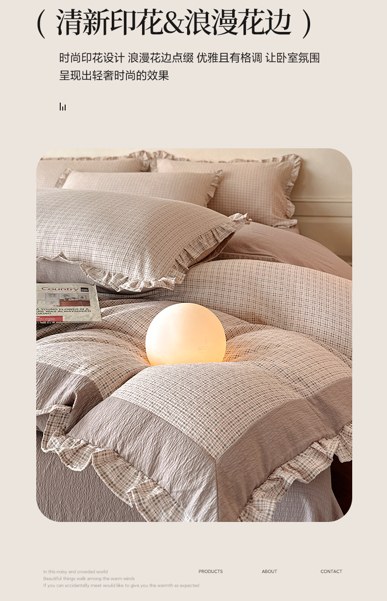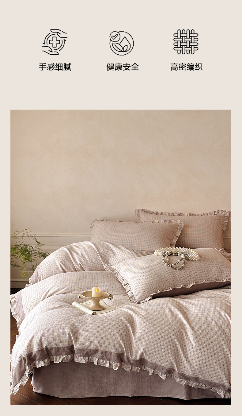 (总)2025新款小清新全棉纯棉四件套-若溪,麦田绿,茉莉奶白,霞光紫,杏花粉,雪山粉