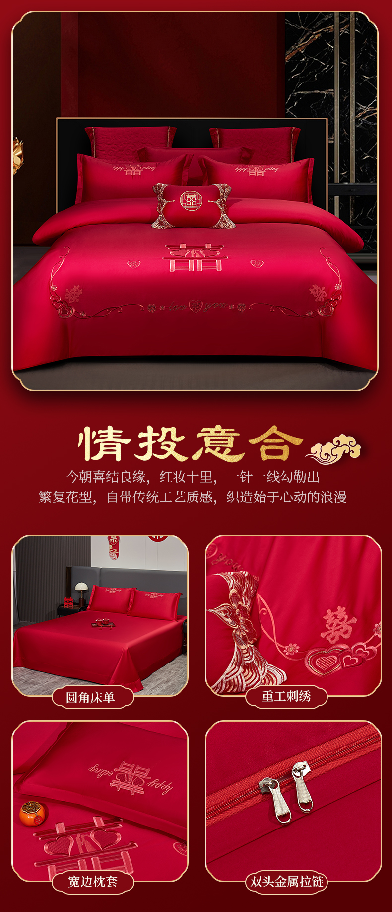(总)浩情国际婚庆供货中心 2026新款100%全棉纯棉新中式刺绣大红结婚婚庆四件套多件套,HQ-百年好合,HQ-情投意合,HQ-幸福美满,HQ-心囍(金),HQ-囍结良缘,HQ-大囍事
