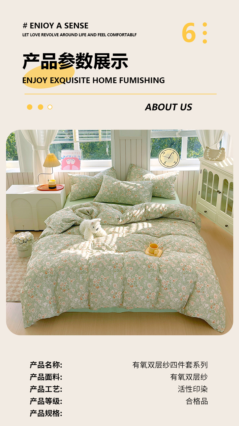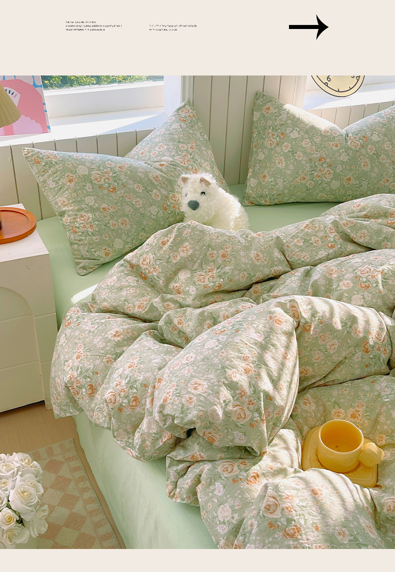 当前位置: 91家纺网 > 商品网购 > 床品套件 > 四件套 > 全棉普通四件套 > 春皖家纺 2026新款A类全棉有氧双层纱印花四件套单品系列-四件套 青茵