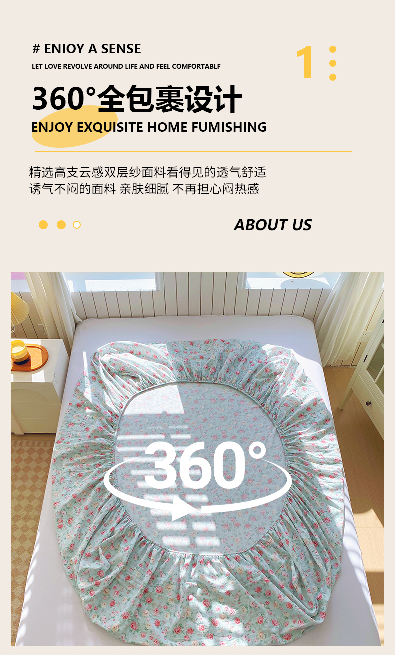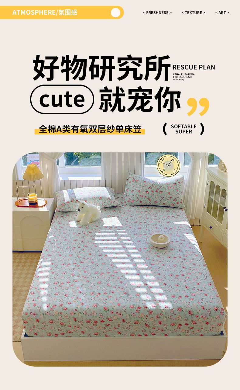 商品名称:(总)春皖家纺 2026新款A类全棉有氧双层纱印花四件套单品系列-单床笠