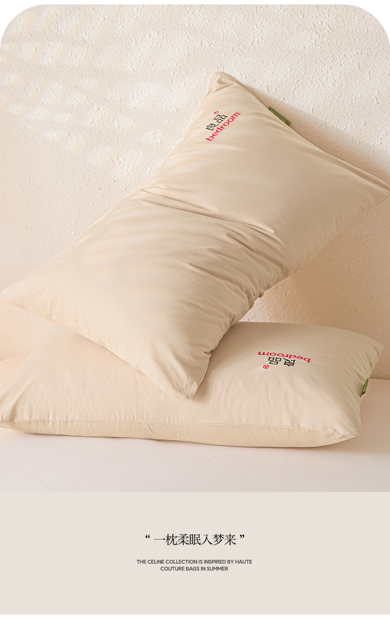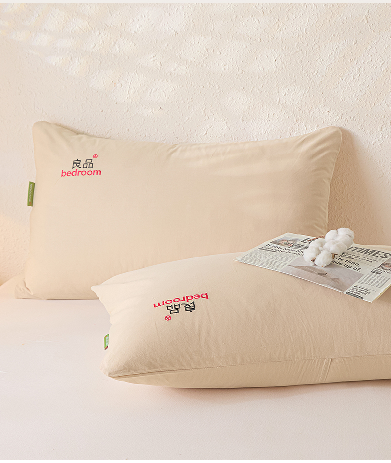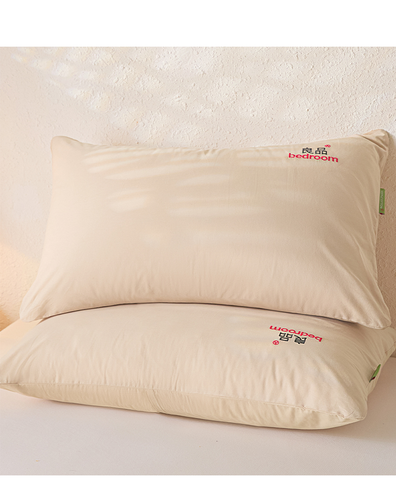 芬晴家纺 2026新款条纹纯色良品刺绣枕套 纯色-浅卡