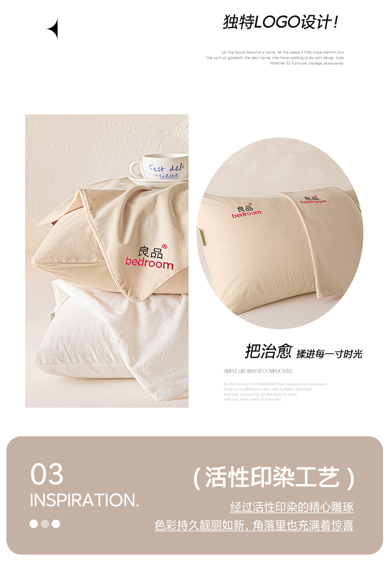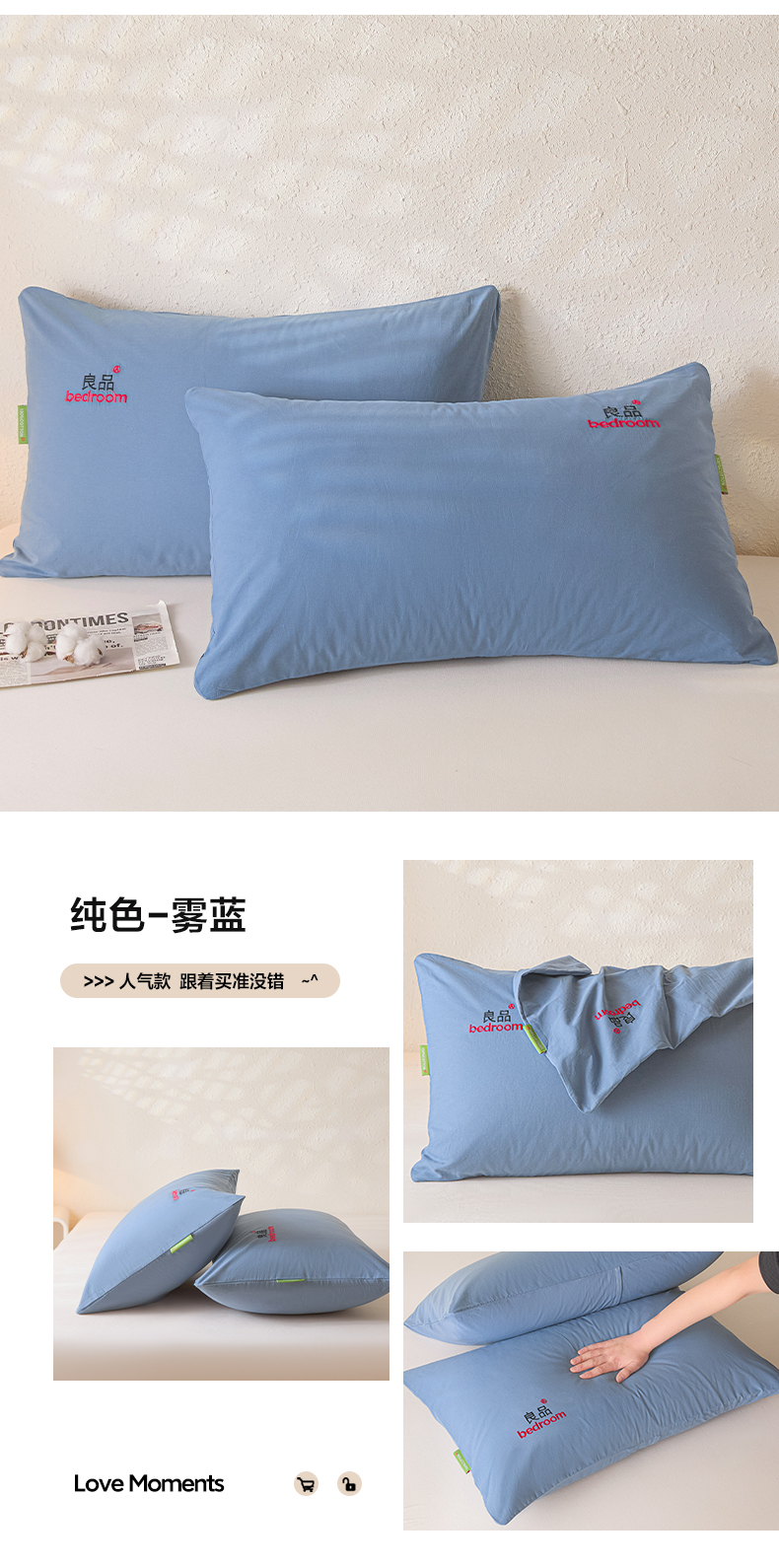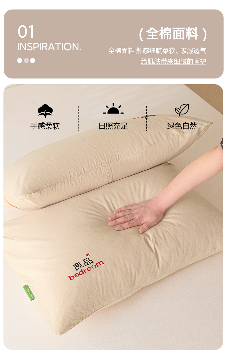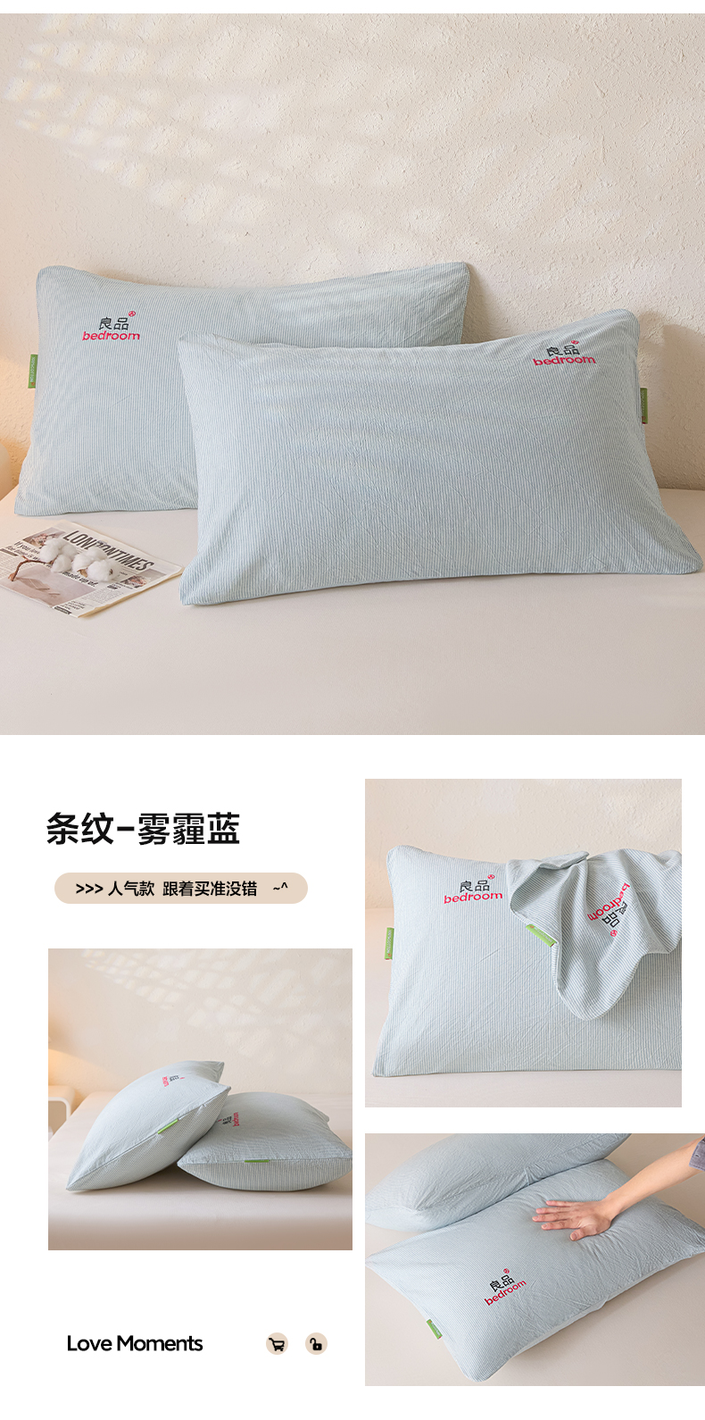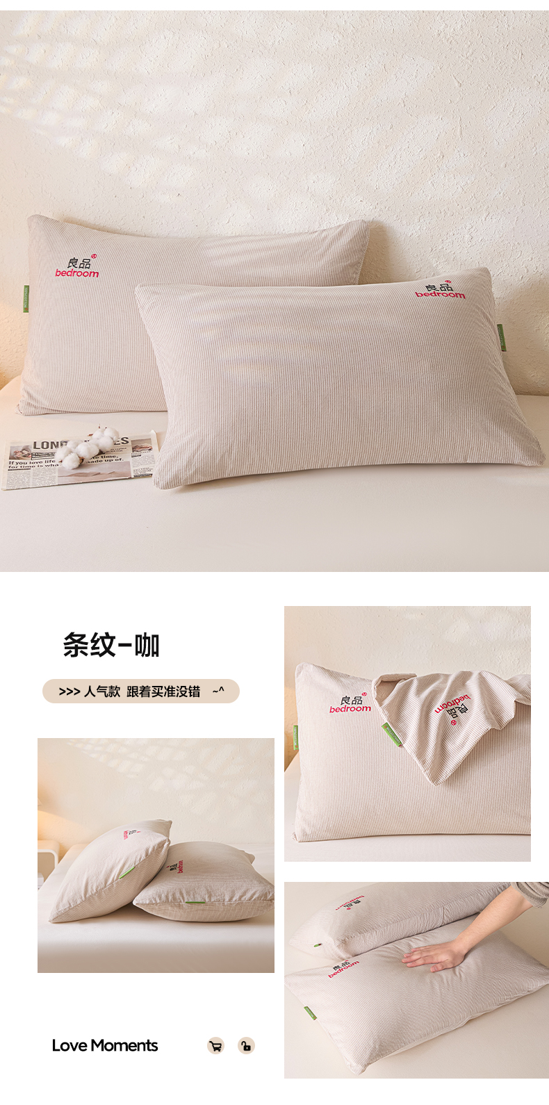 商品名称:芬晴家纺 2026新款条纹纯色良品刺绣枕套 纯色-浅卡