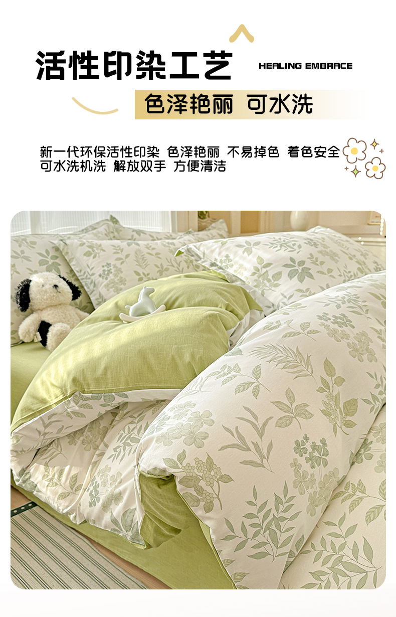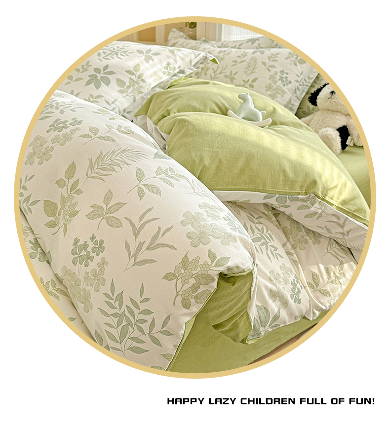 • 91家纺网 家纺一手货源 找家纺 春雨家居 2026新款全棉印花ins减龄可爱小清新单被套 洛克庄园-绿