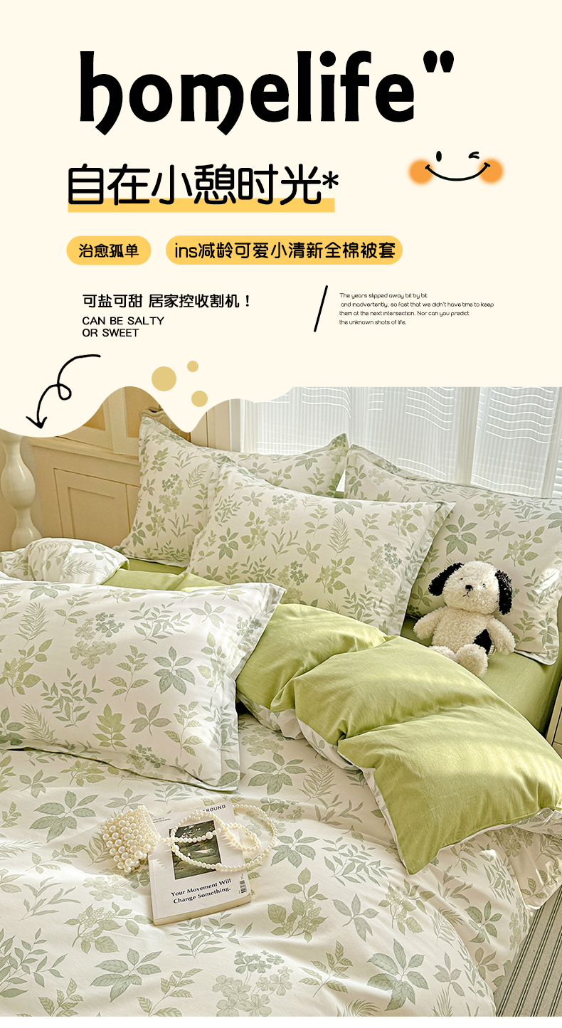 当前位置: 91家纺网 > 商品网购 > 床上用品 > 被套 > 春雨家居 2026新款全棉印花ins减龄可爱小清新单被套 洛克庄园-绿