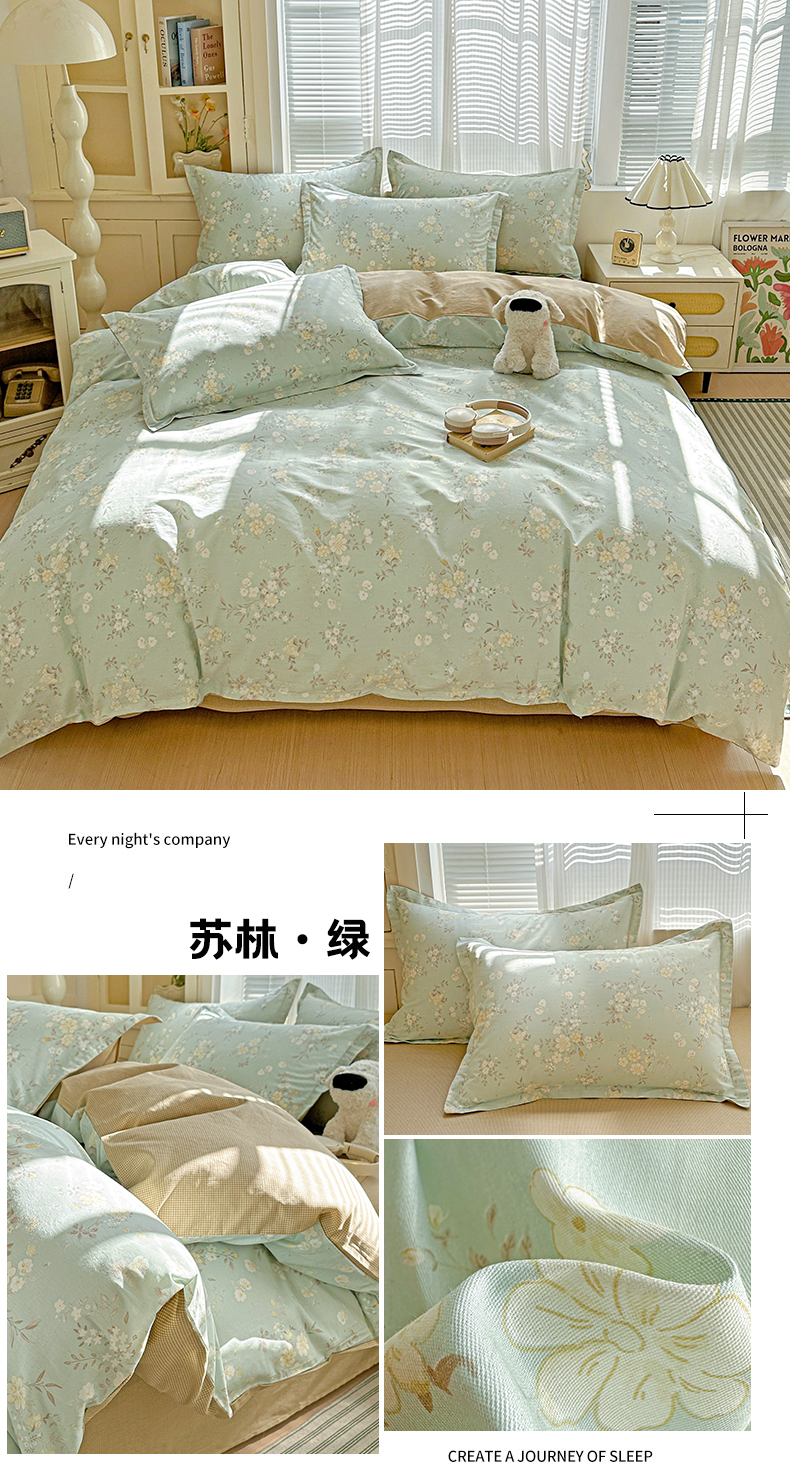 (总)春雨家居 2026新款全棉纯棉花ins减龄可爱小清新四件套(提供买家秀、质检报告、有预留缩水)),贝尔兰-兰,比星邦尼狗,布布迷宫,春漫庭,达乐宝贝,朵唯,芙莉,格子布丁狗,故事小黄花,韩系拼图,旧书折痕-蓝,蓝拼KT-兰,浪漫花园,洛克庄园-绿,萌趣汪汪,暮洛星,奶油凯蒂-兰,奶油羞羞狗,清秋夜曲,秋日确幸-豆沙,苏林-绿,苏糖-粉,夏日花莳,小菠萝,小猫时光-兰,心动庄园,星星童话园-兰,叶语轻喃-绿,玉海棠,芋泥小狗,醉梦惜花