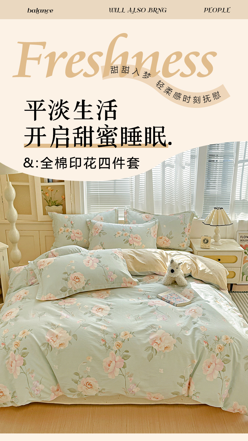 当前位置: 91家纺网 > 商品网购 > 床品套件 > 四件套 > 全棉普通四件套 > 春雨家居 2026新款全棉纯棉花ins减龄可爱小清新四件套 夏日花莳