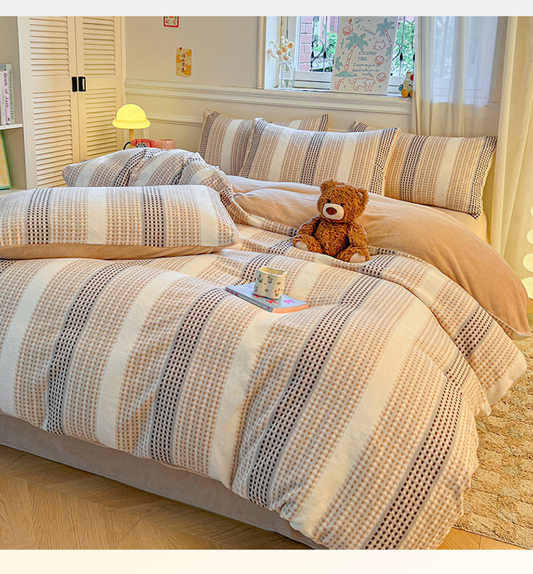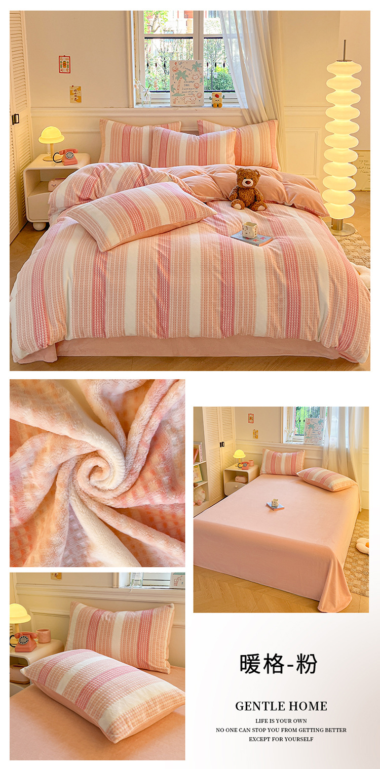 良品汇馆 2026【特价牛奶绒四件套】牛奶绒四件套秋冬保暖绒布床品件套冬天加厚 暖格-蓝