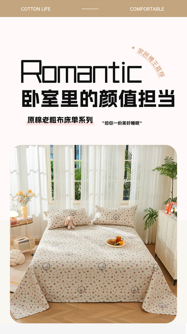 (总)爱彼家纺 2026新款升级细沙印花老粗布床单单品床单床单单件-细沙系列四,花笺,花漾手礼,花屿南瓜,蓝花序,蓝菊绘,山河日立,甜心