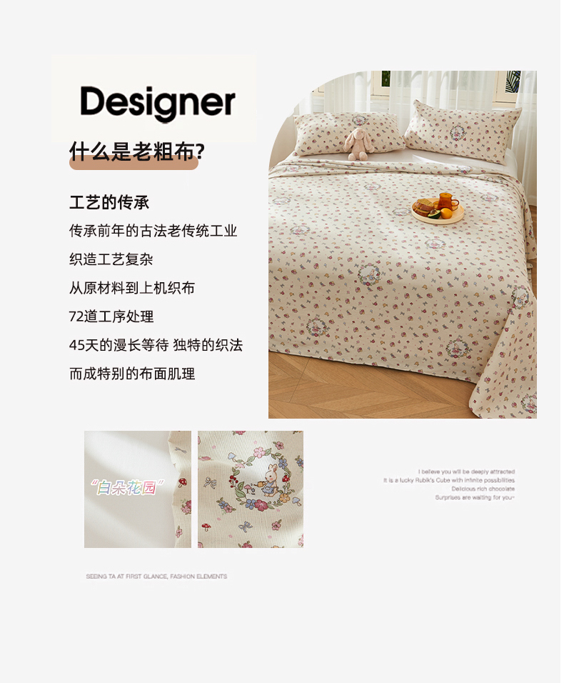 当前位置: 91家纺网 > 商品网购 > 床上用品 > 床单 > 爱彼家纺 2026新款原棉老粗布烫画老粗布印花系列单床单凉席席子三件套 白朵花园