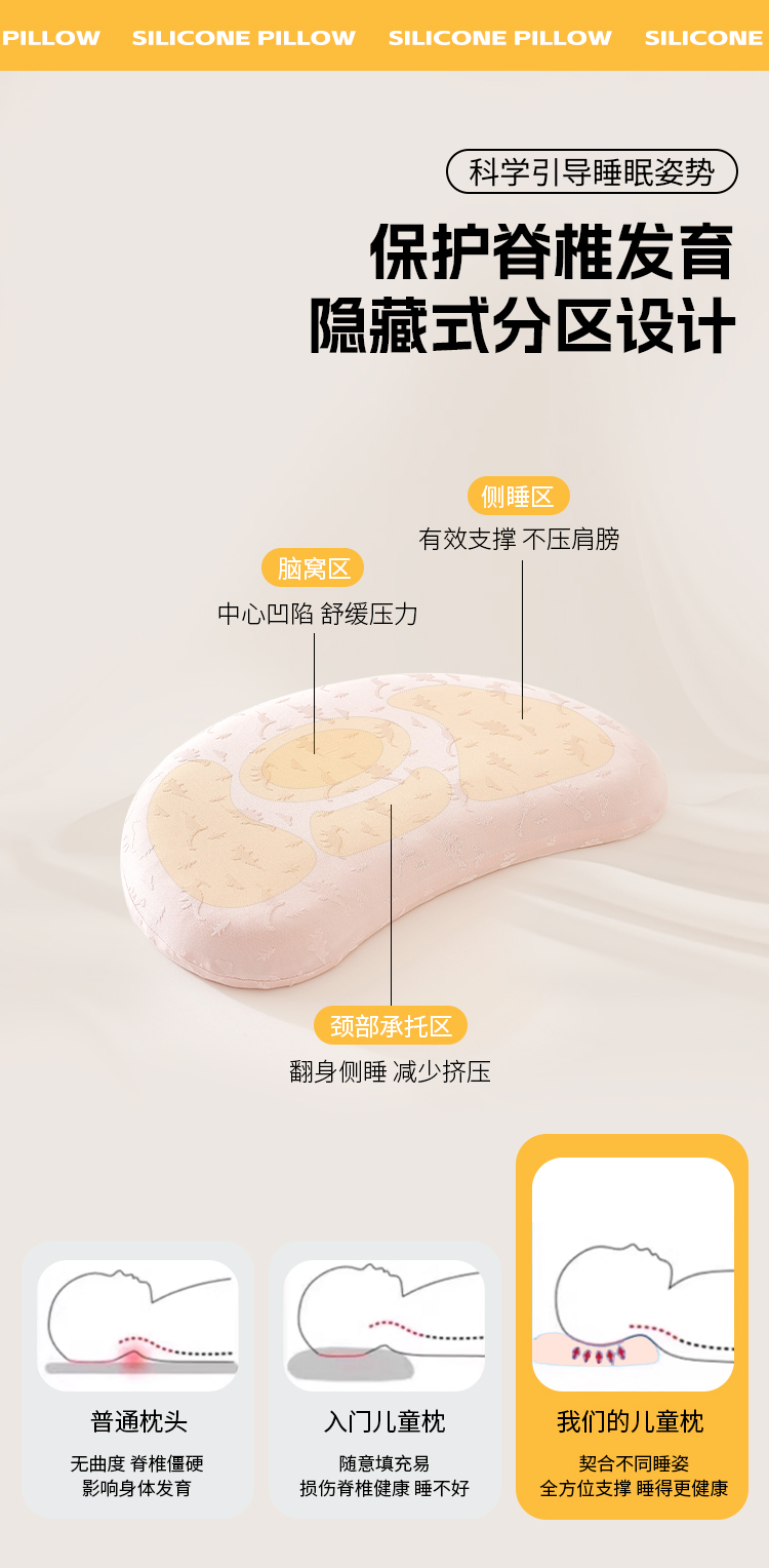 当前位置: 91家纺网 > 商品网购 > 枕头/枕芯/保健枕/颈椎枕 > 枕头枕芯 > 帛茗轩家居 2026新款月牙硅胶枕(恐龙面料) 枕头枕芯 黄