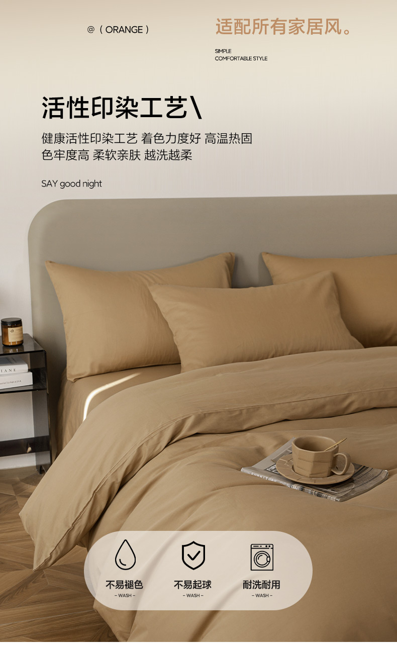 商品名称:盛馨家纺 2026新款40长绒棉ins美拉德色系纯色双拼全棉单品被套 桃木心