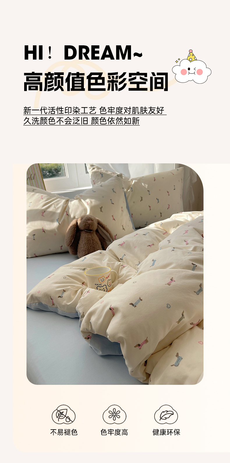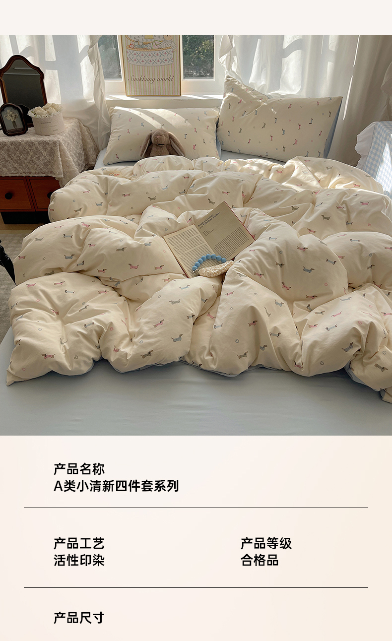 (总)沐芷 2026 【提供买家秀】水洗棉四件套A类简约小清新床上用品床笠款被套床单三件套被罩卡通可爱,奔向幸福,云朵狗,饼干熊,彩虹天堂,烘焙师,蓝豹喵星人,蓝色假日,猫屿甜心,萌猫派对,趣跑,森系田园兔,雾蓝西高地,旋转木马,芝士碎