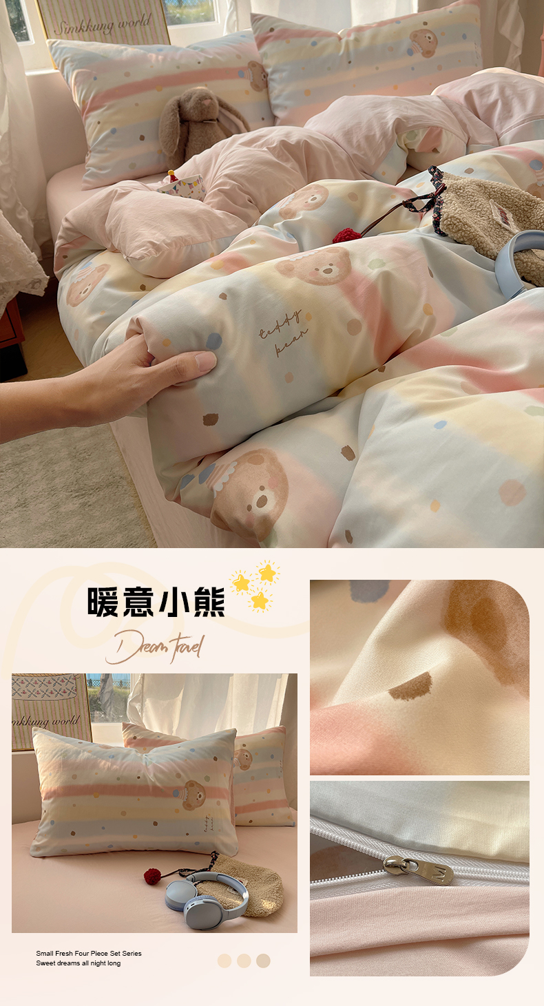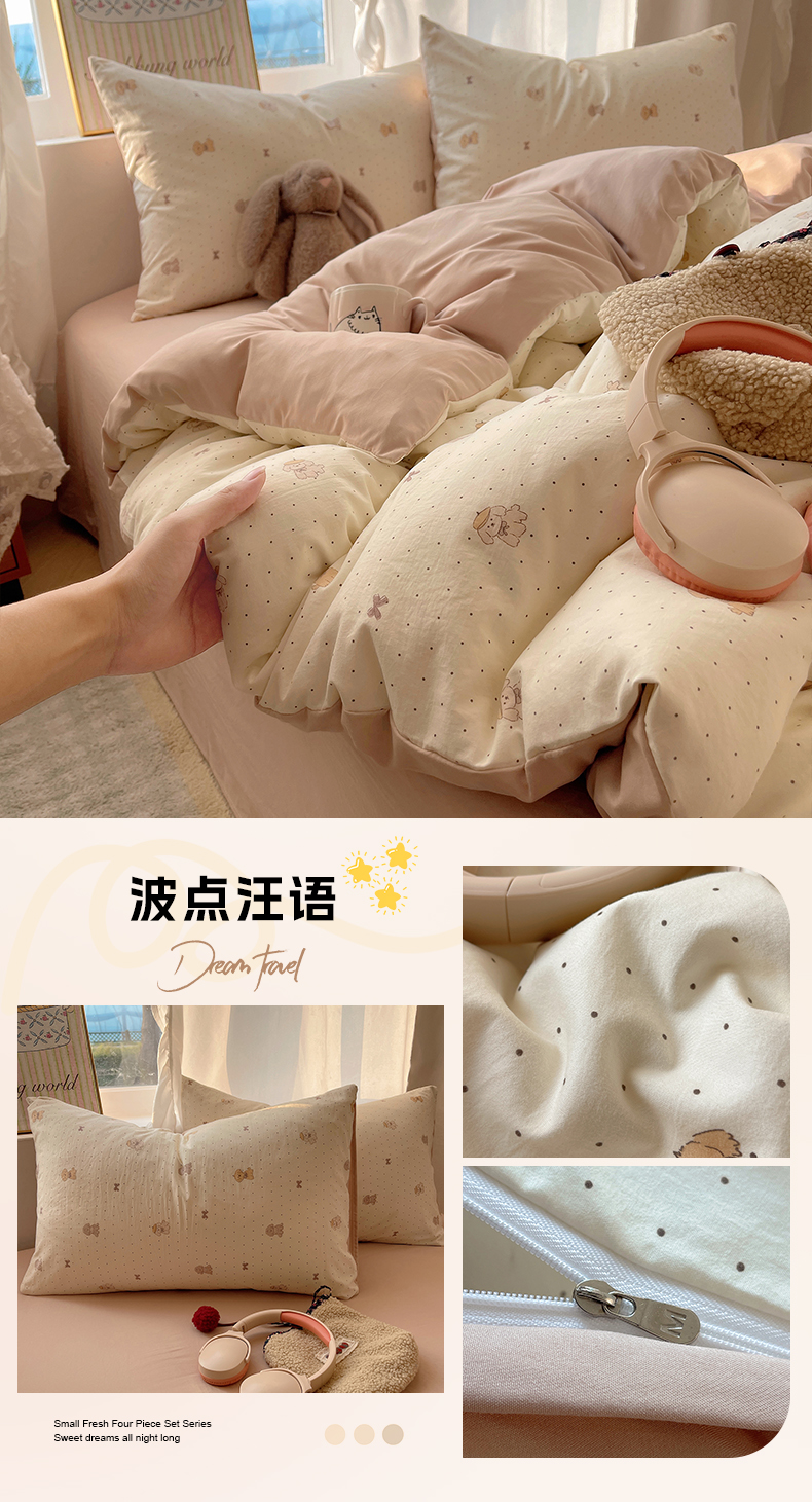 (总)沐芷 2026 【提供买家秀】古法水洗仿棉A类四件套床上用品三件套被套被罩床笠款---第一波,萌犬游记,豹纹音乐,波点汪语,草莓啵啵,花屿庄园,灰度情书,家园,假日萌犬,蓝调序曲,猫咪甜点屋,毛绒熊仔,暖意小熊,甜心紫熊,兔耳朵,樱桃物语,雨沫