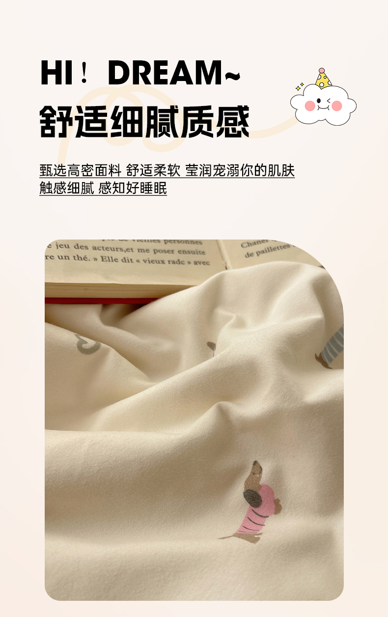 (总)沐芷 2026 高克重110g泡芙棉四件套A类床上用品被套宿舍床单三件套【提供买家秀】,绅士小狗,咖兔花园,可可猫条,蓝丝带,领结小猫,别看小狗,猫咪集合,绵绵奶兔,苹果猫,奶油结兰,青苹果乐园,秋末南瓜,软萌小脑袋,星月糖粒,悦悦小兔,樱桃笔记,线条腊肠狗