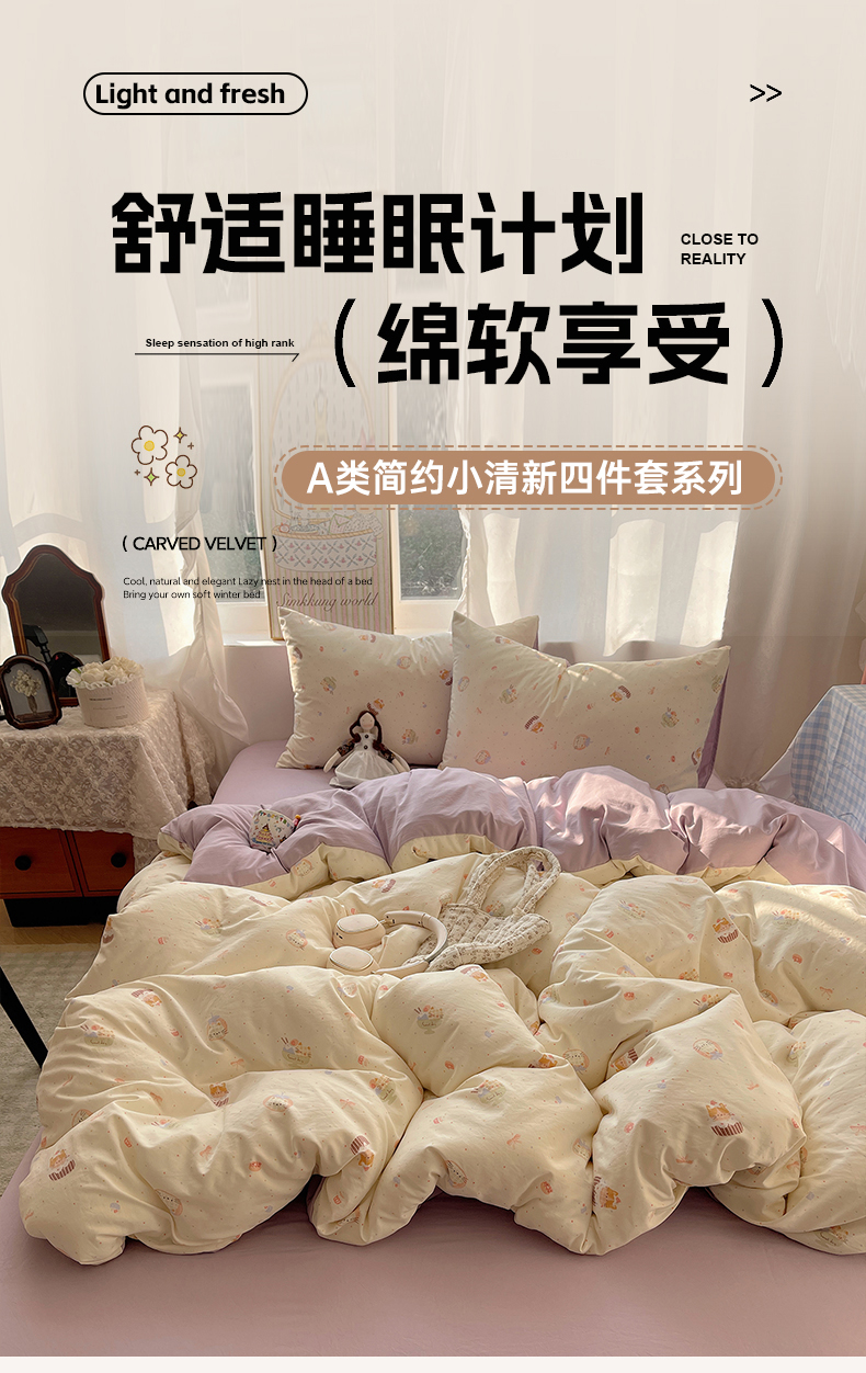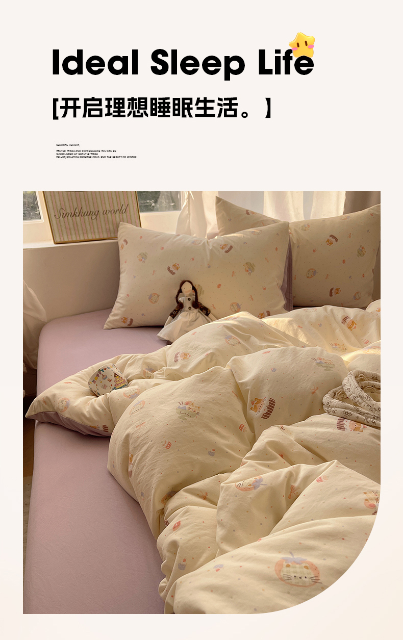 当前位置: 91家纺网 > 商品网购 > 床品套件 > 四件套 > 水洗棉四件套 > 沐芷 2026 【提供买家秀】古法水洗仿棉A类四件套床上用品三件套被套被罩床笠款---第一波 猫咪甜点屋