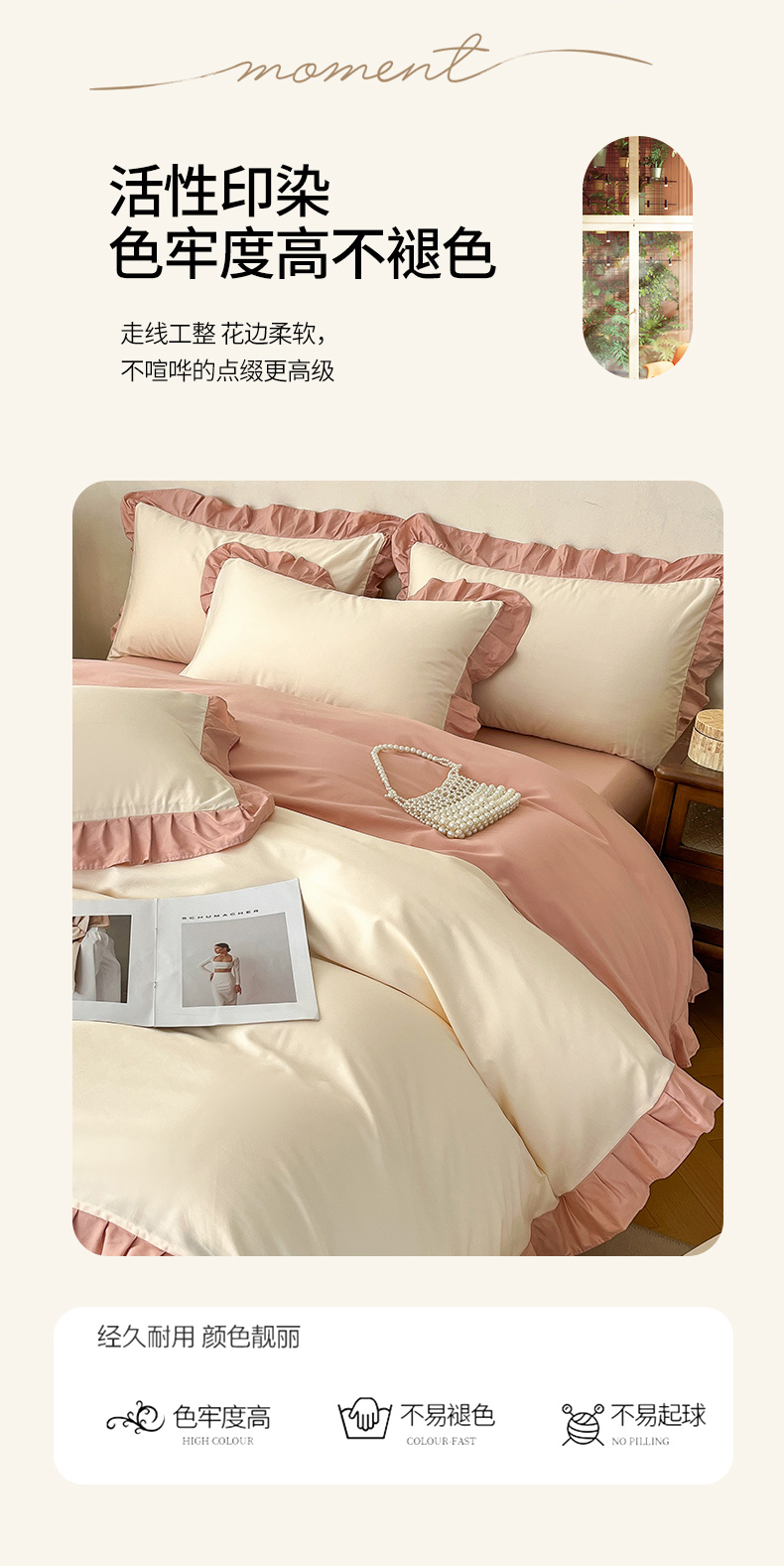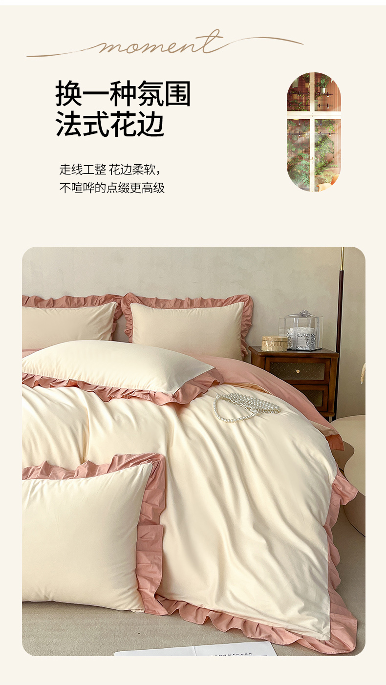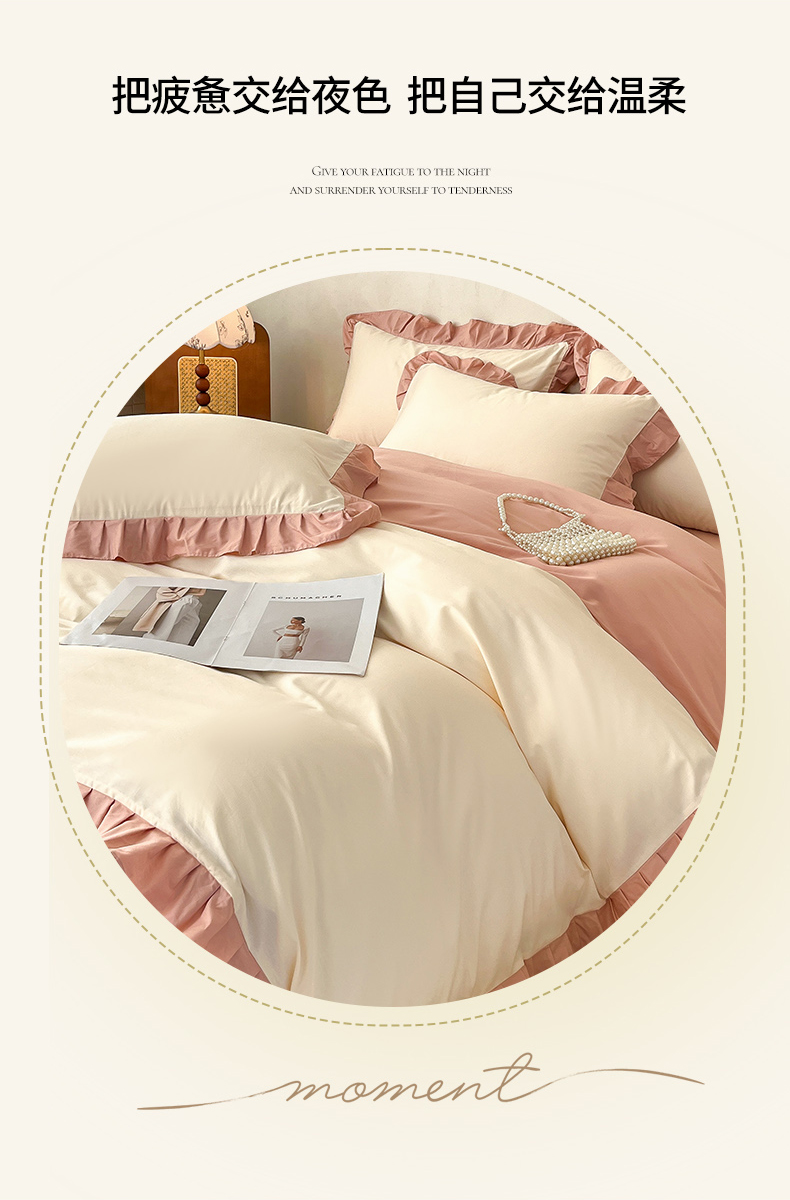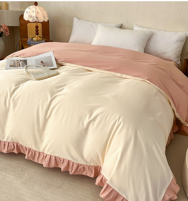 • 91家纺网 家纺一手货源 找家纺 艾迪尚家纺 2026法式韩版荷叶边纯色长绒棉纯棉单被套 奶芙慕粉