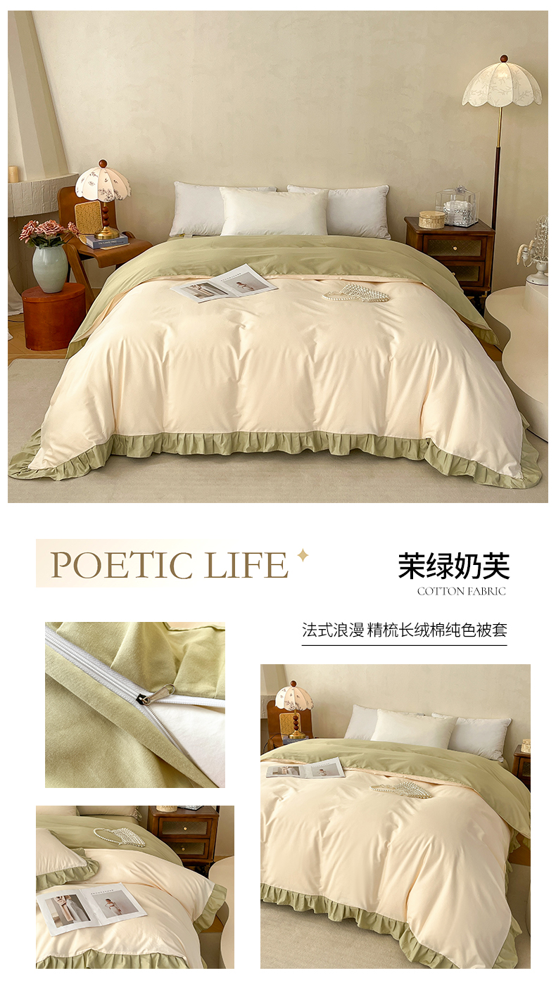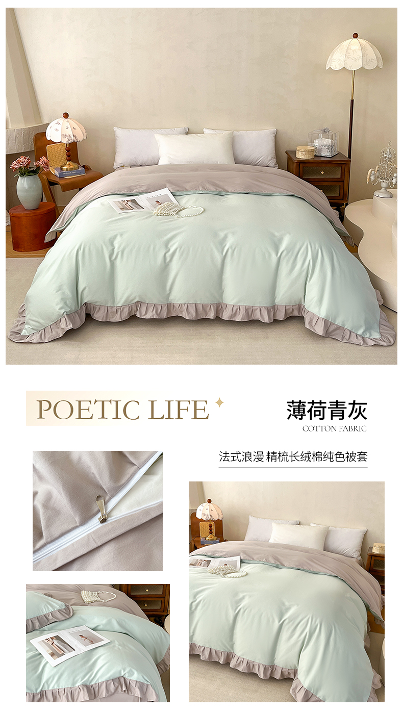 (总)艾迪尚家纺 2026法式韩版荷叶边纯色长绒棉纯棉单被套,薄荷青灰,冰川蓝香草白,茉绿奶芙,奶芙慕粉,青提絮语,柔杏浅绿,瑞绿慕斯粉,雾蓝杏语,云白芽绿,云灰仙女粉